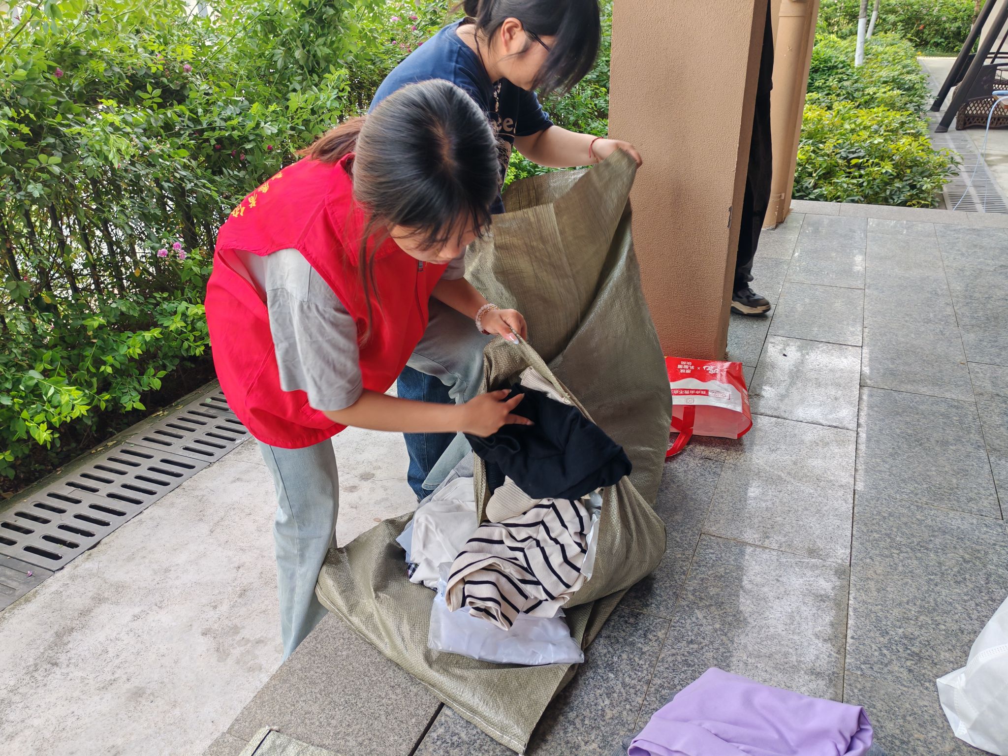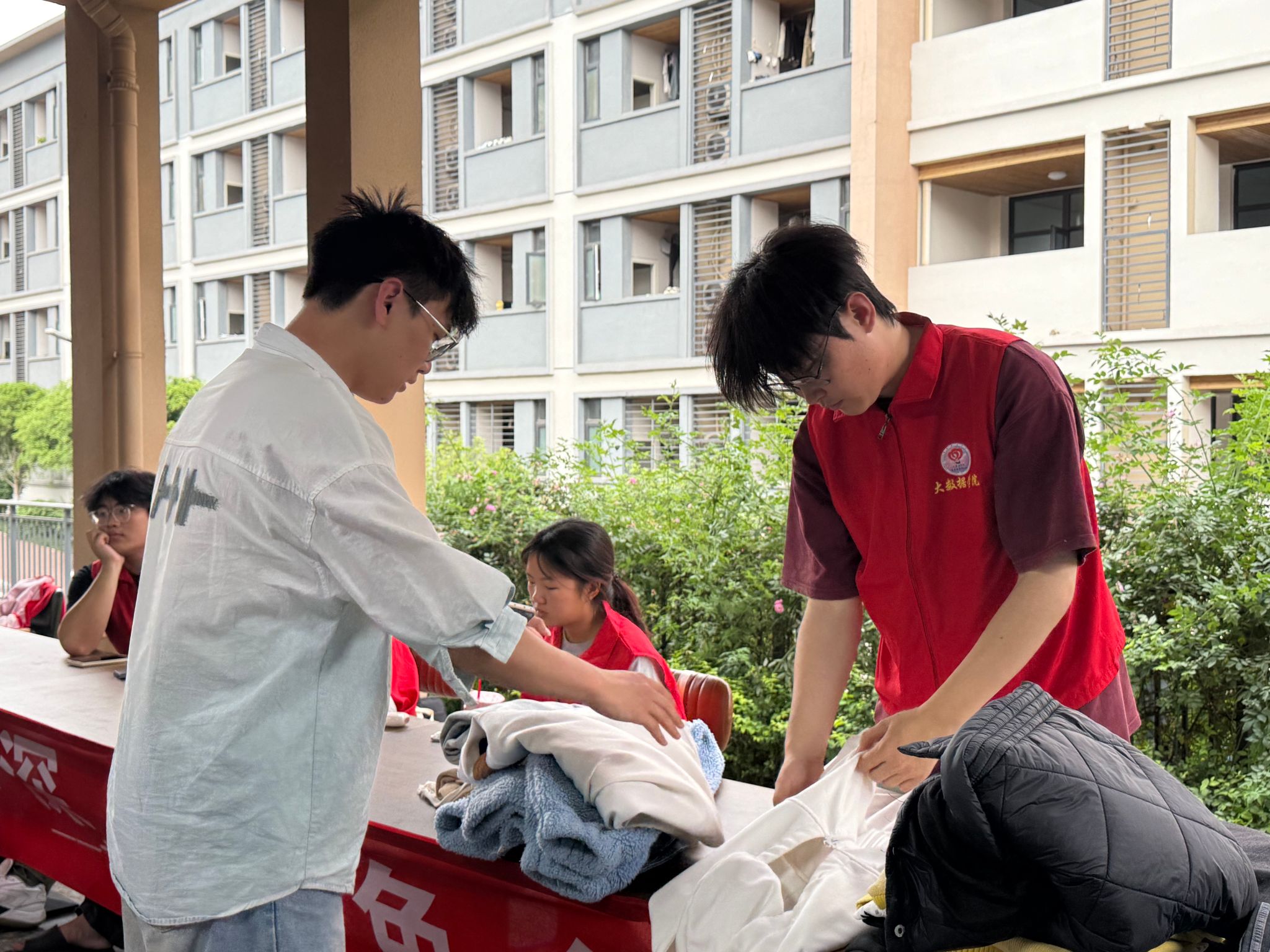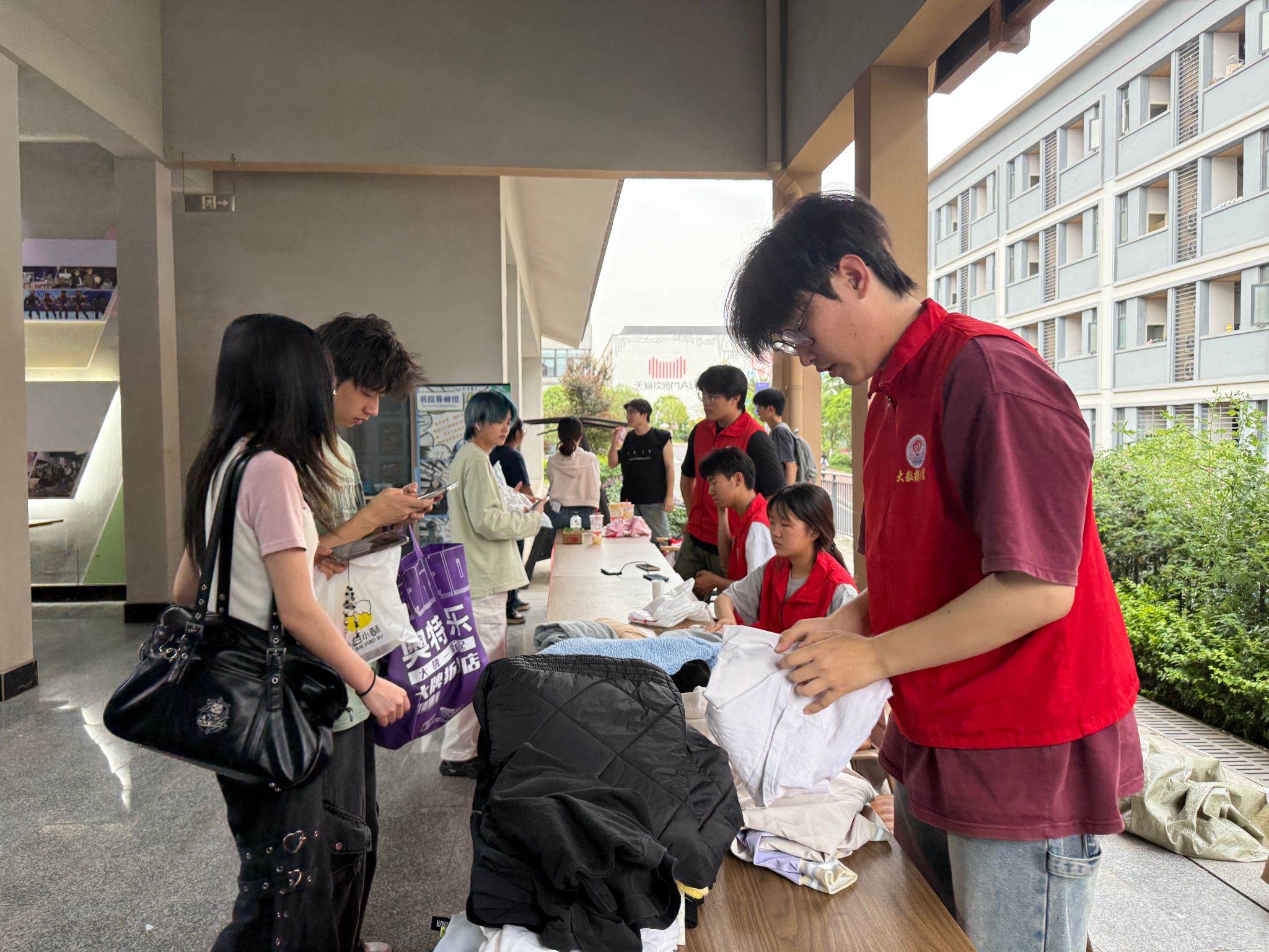 活动当天,志愿者们早早来到现场,分工明确,有条不紊地开展旧衣回收工作。同学们热情高涨,纷纷带着整理好的旧衣物来到回收点。志愿者们微笑着迎接每一位同学,仔细检查衣物的状况,对可回收的衣物进行分类、登记。现场气氛热烈而温馨,每一件旧衣物都承载着同学们的爱心与对环保的支持。有的同学还主动向志愿者询问旧衣的去向,当得知这些衣物将被捐赠给有需要的人或进行环保再生处理时,他们感到十分欣慰。