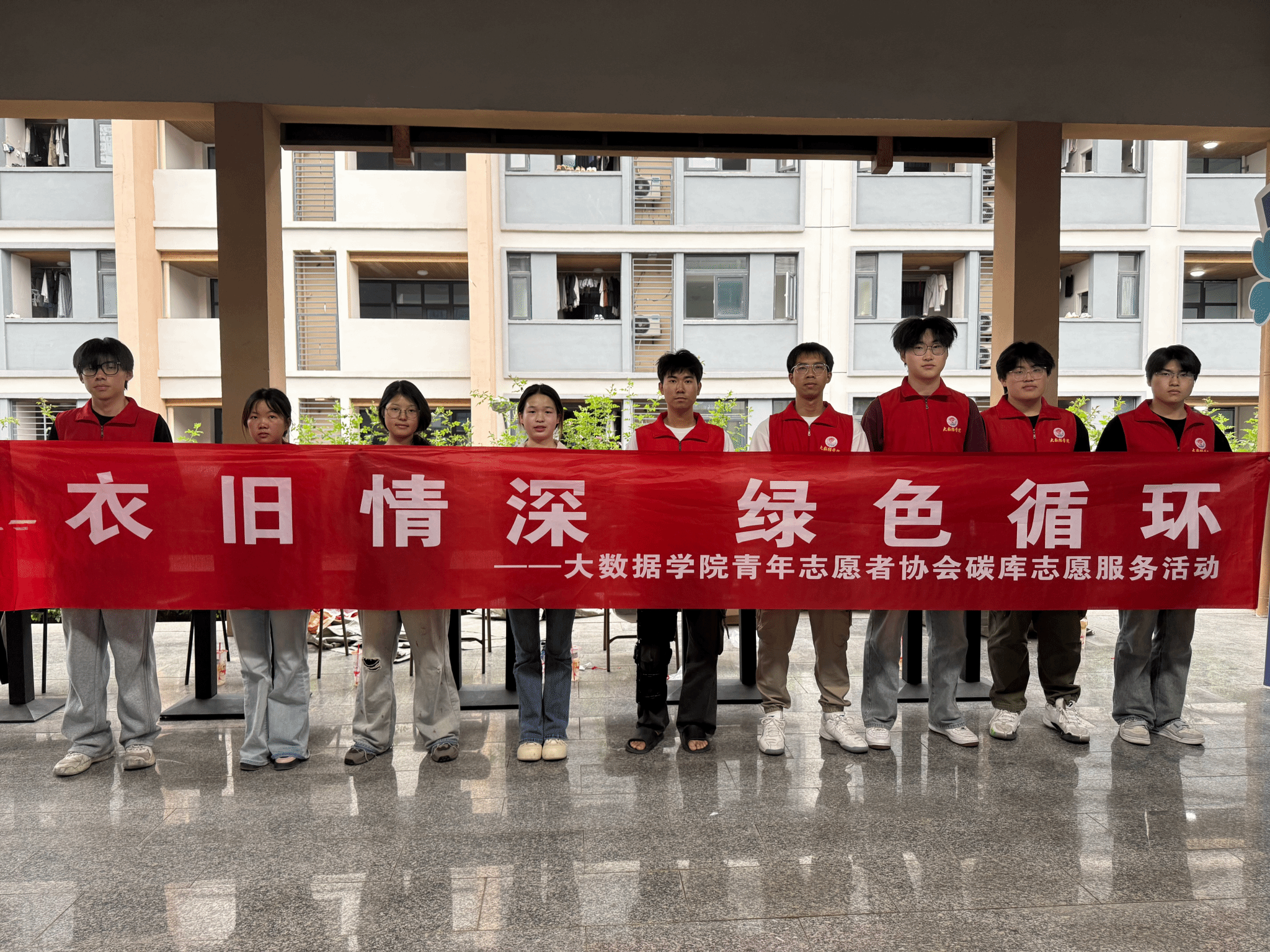 2025年4月16日,大数据学院的志愿者们于綦河书院2号楼几何空间成功举办了碳库旧衣回收志愿服务第一期活动。本次活动以“衣物情深,绿色循环”为主题,旨在倡导环保理念,促进旧衣物的合理循环利用,同时培养同学们的社会责任感。