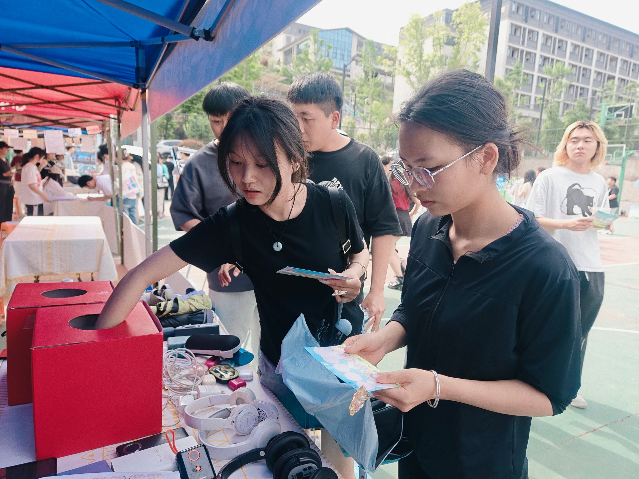 本次活动的一大亮点是同步开展的公益义卖。义卖商品涵盖文具、手工艺品、书籍等,所有收益将捐赠至公益机构。参与者通过盲盒挑战赛获得的优惠可直接用于义卖购物。许多同学表示,这种“游戏+公益”的形式新颖有趣,不仅体验了游戏的乐趣,又为公益事业贡献了力量。其具体的活动规则设定,猜中盲盒中2个物品即可享受义卖商品1元减免,连续猜中4个物品更可获半价优惠,这无不极大激发了参与者的热情。