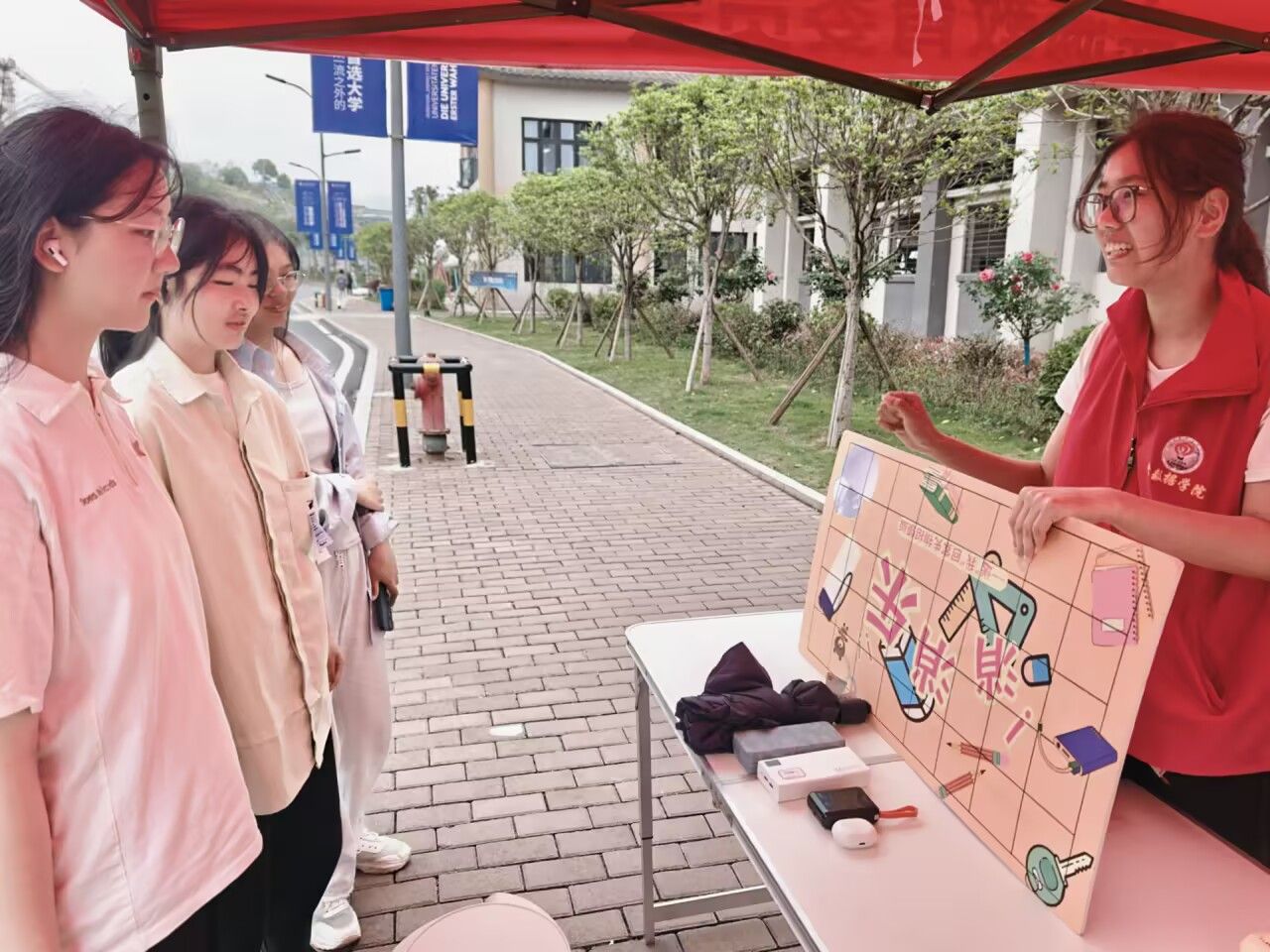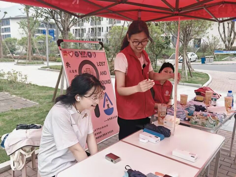 活动现场设立的失物招领展区也吸引许多师生驻足。工作人员将近期在教学楼各主要区域收集到的50余件遗失物品进行分类展示,展品主要涵盖三大类高频遗失物品:雨伞、蓝牙耳机、充电宝。针对长期困扰师生的校园失物管理难题,展区特别制定标准化的认领流程,认领者需准确描述物品特征,随后志愿者将依据物品编号调取登记档案进行比对,在确认物品归属无误后,认领者需完整填写包括学号、联系方式等信息的登记表。这一规范化运作模式不仅提高失物招领效率,也为建立长效的校园失物管理机制提供了实践基础。