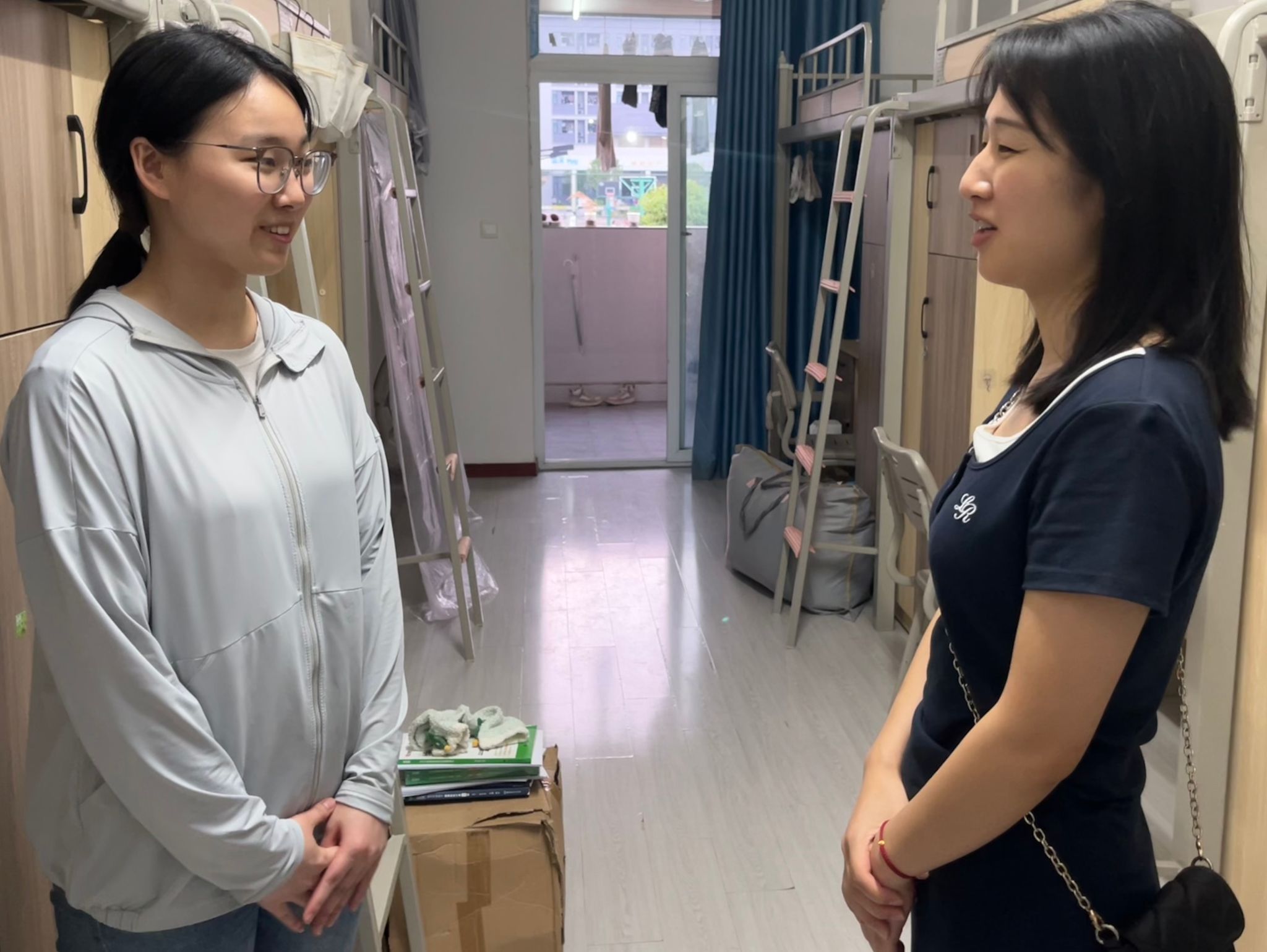 王超男老师于2025年5月13日晚上7点半去到綦河书院二号楼N405,N406和N407宿舍,与同学们一起开展异科导师活动。部分同学因为实习还未赶回学校,王老师和其余同学在宿舍进行聊天交流。