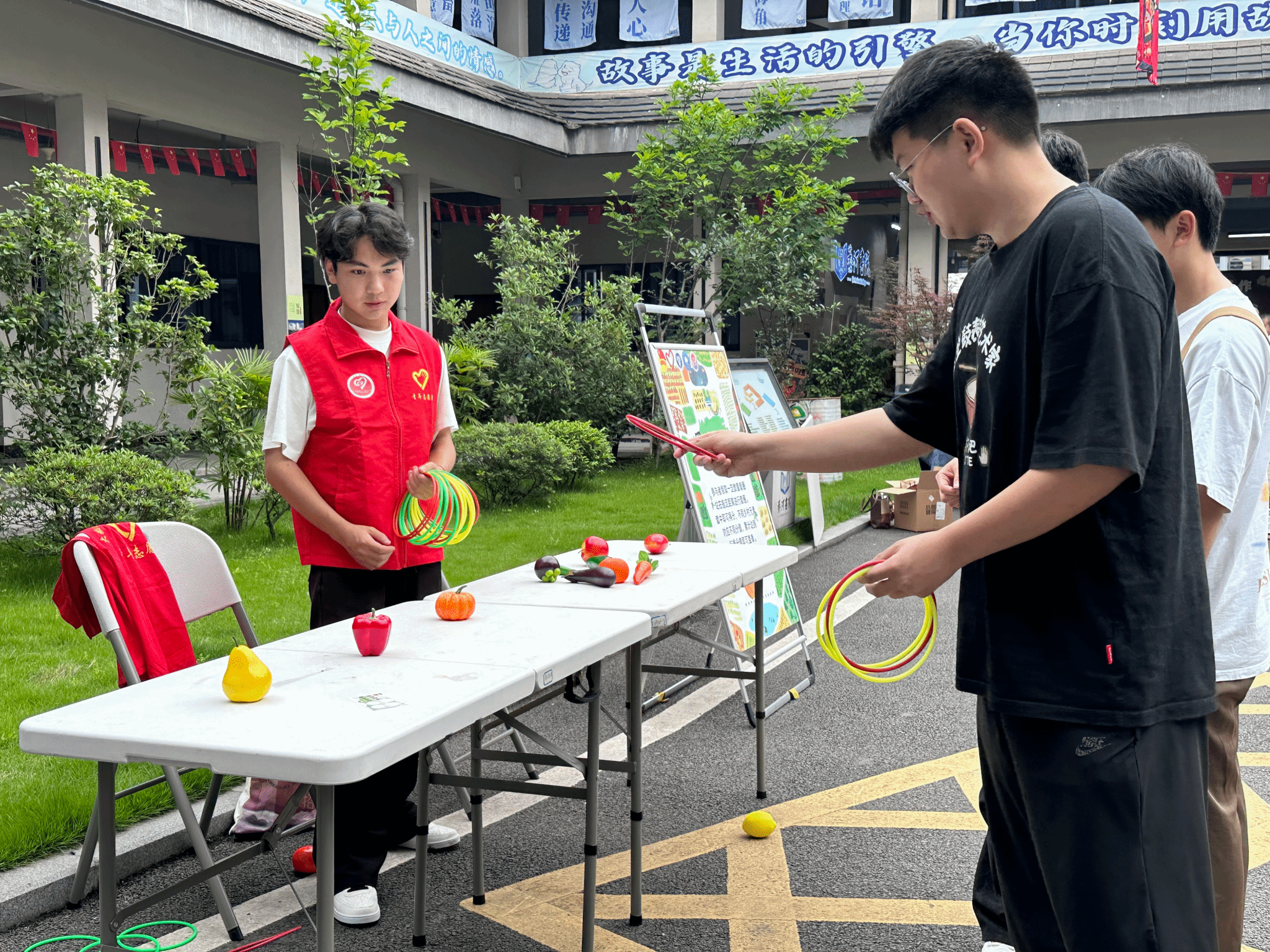 本次活动不仅设置作品展览,大数据学院青年志愿者协会还精心策划了趣味游戏分别分为四个板块,由不同的青协工作人员负责。在“圈住乡村梦”套圈大挑战,需要参与者用套圈套住对应的乡村元素,从而加强参与者对乡村的了解;“乡村知识翻翻乐”以记忆配对游戏形式,巧妙融入乡村文化、产业知识;“乡村丰收大挑战”模拟秋收场景,让参与者体验农忙时节的喜悦;“振兴大富翁”则将乡村振兴政策、生态知识融入掷骰子闯关,在趣味问答中强化知识传递。新颖的互动形式让参与者在游戏中沉浸式感受乡村振兴的多元内涵。
