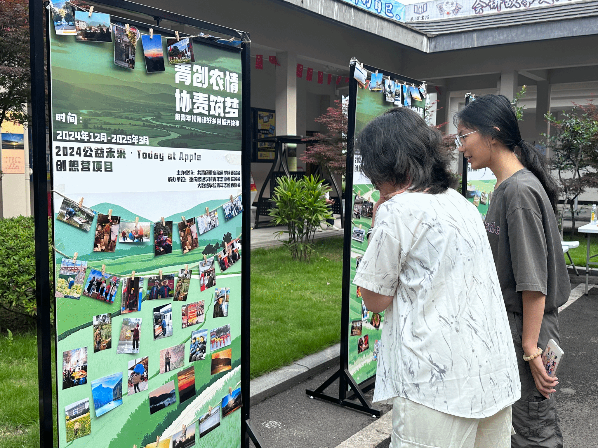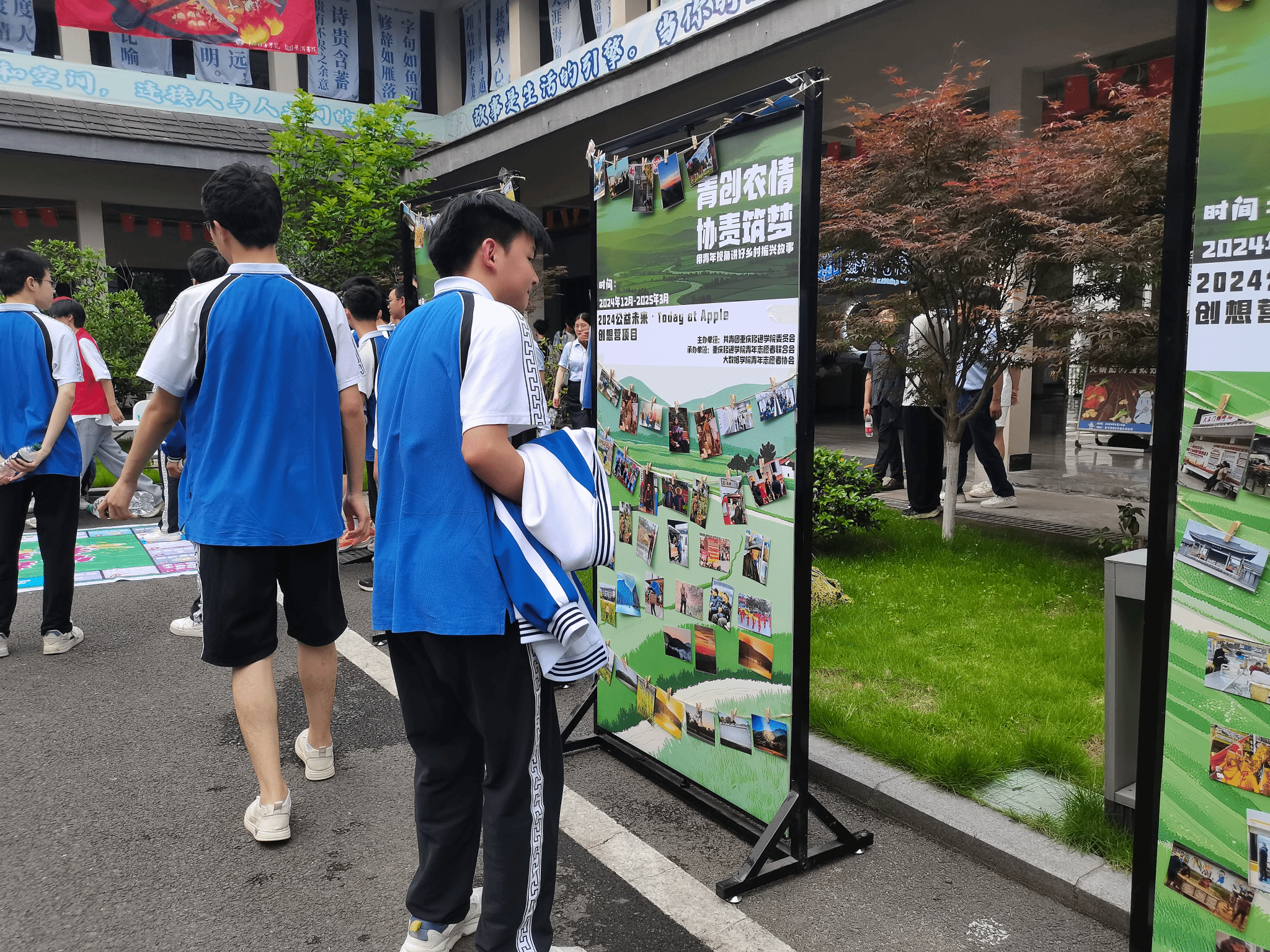 为引导青年群体用独特的视角聚焦乡村公益项目,讲好乡村振兴故事。大数据学院青年志愿者协会于2025年5月14日,在綦河书院开展了一场意义非凡的游园展览活动。本次活动以影像与趣味互动勾勒乡村振兴的图景,带我们一起走进乡村振兴的广阔天地,感受那份蓬勃向上的力量,共同会就乡村新画卷,共筑美好家园梦。