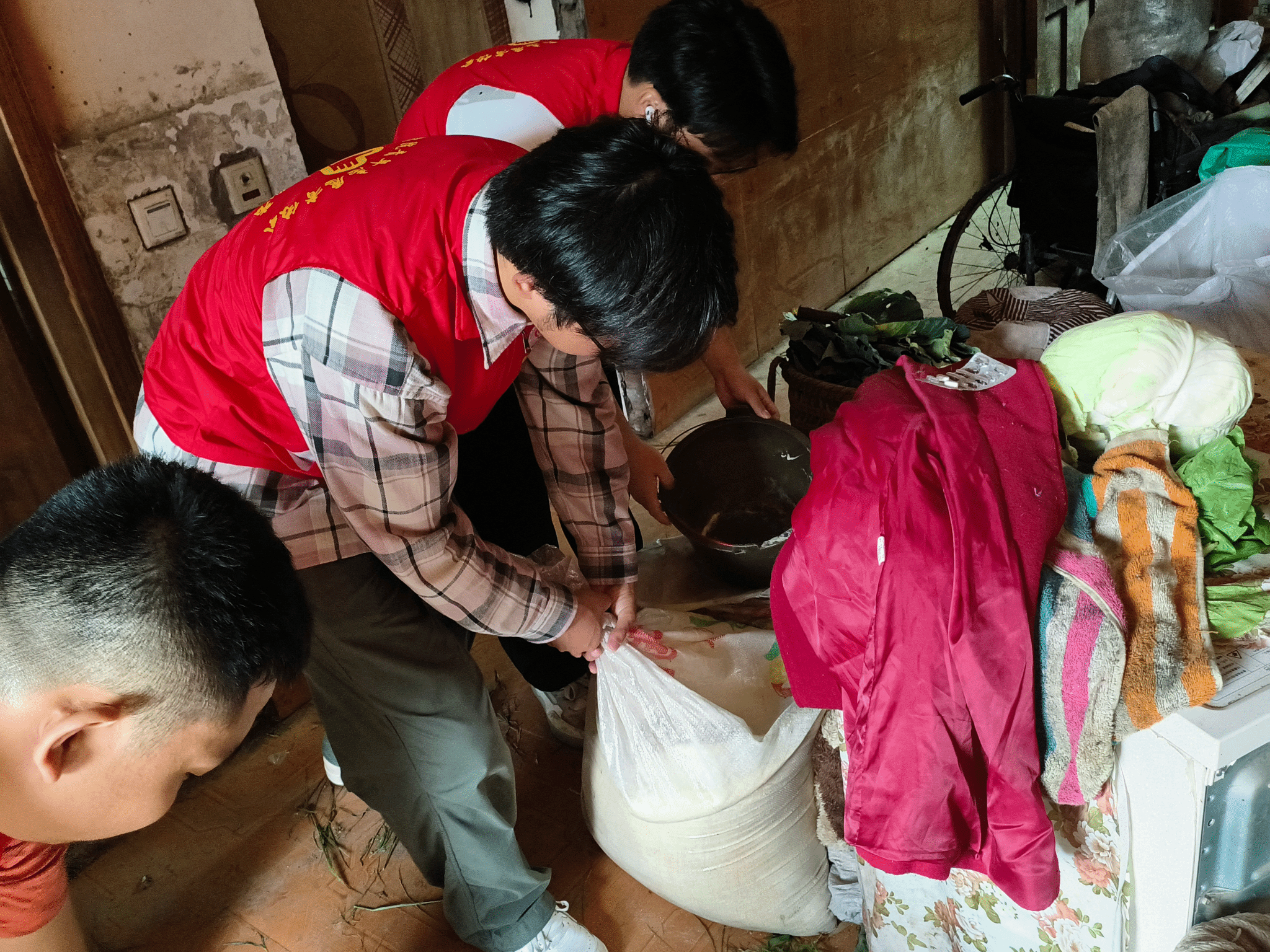到达特殊群体家中后,志愿者们先与受助者亲切交流,了解其需求与生活状况,迅速拉近彼此距离,缓解受助者的紧张情绪。随后,志愿者们分工协作,运用培训所学的清洁技巧,对院子和房间等重点区域展开深度清洁。擦拭家具、清扫地面、清洁窗户、整理物品……每一个环节都认真细致。在清洁过程中,志愿者们还不忘与受助者互动,倾听他们的故事,给予心理慰藉,普及日常清洁和健康防护小知识,并进行简单的居家安全隐患排查。