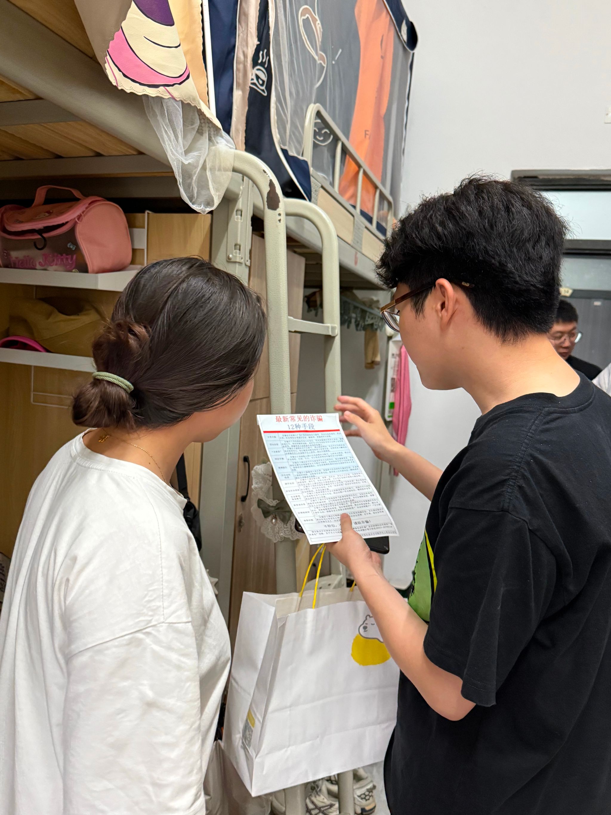 为增强学生防范电信网络诈骗意识,营造安全和谐的校园环境,2025年5月14日,异科导师温朝一联合辅导员李昌茂老师,深入学生观云书院宿舍开展“反诈宣传进寝室”专项活动。通过面对面讲解、案例分析、互动答疑等形式,将反诈知识送到学生身边,切实提升同学们的防骗能力,筑牢校园安全防线。