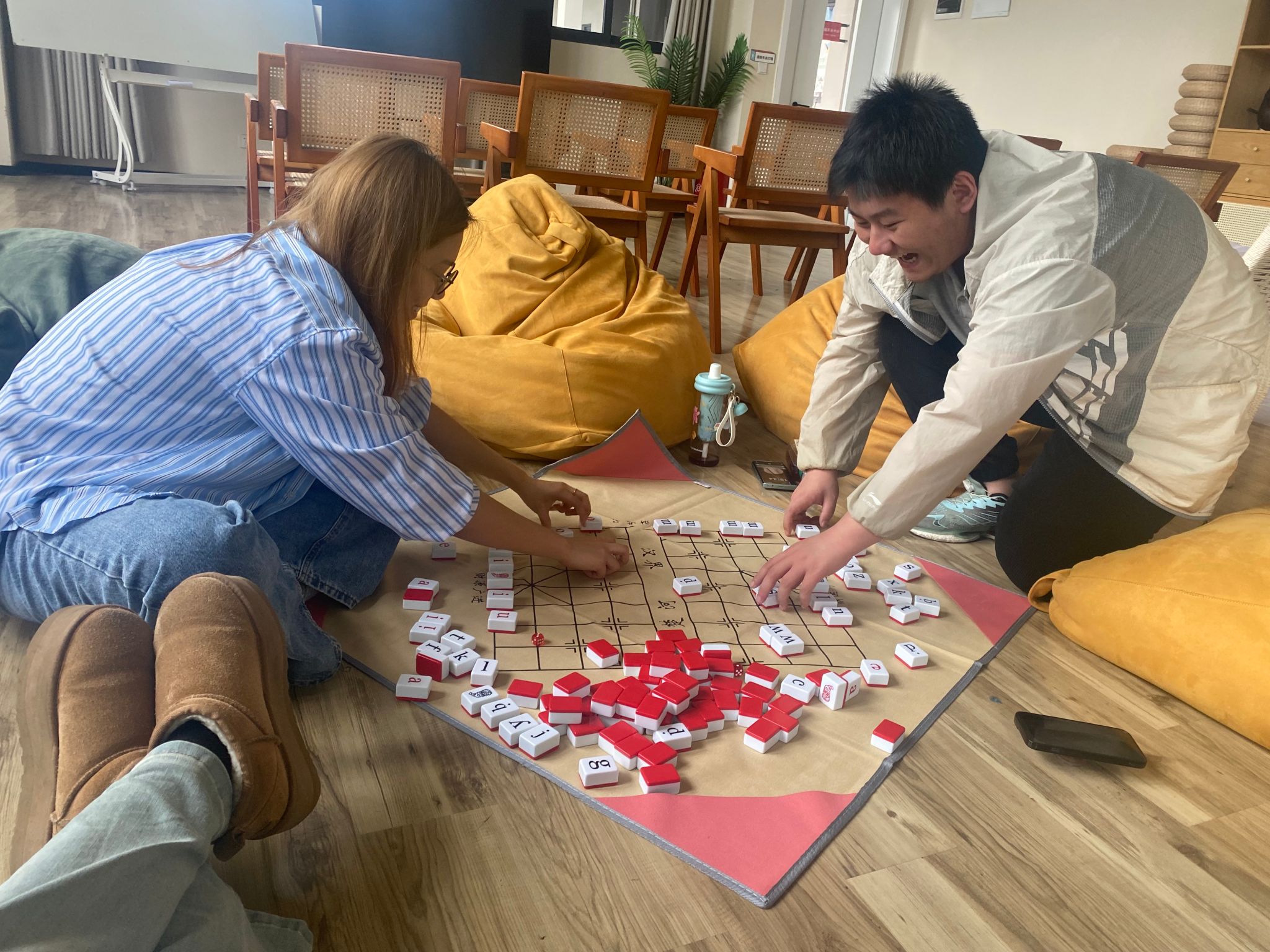 为打破期末沉闷,激发思维活力,在趣味互动中轻松充电,同时也为校园生活增添一抹别样亮色,异科导师龚思月于5月28日下午在玉棠书院云里发呆室,精心策划组织了一场主题鲜明、妙趣横生的“英语麻将”创意游戏派对。