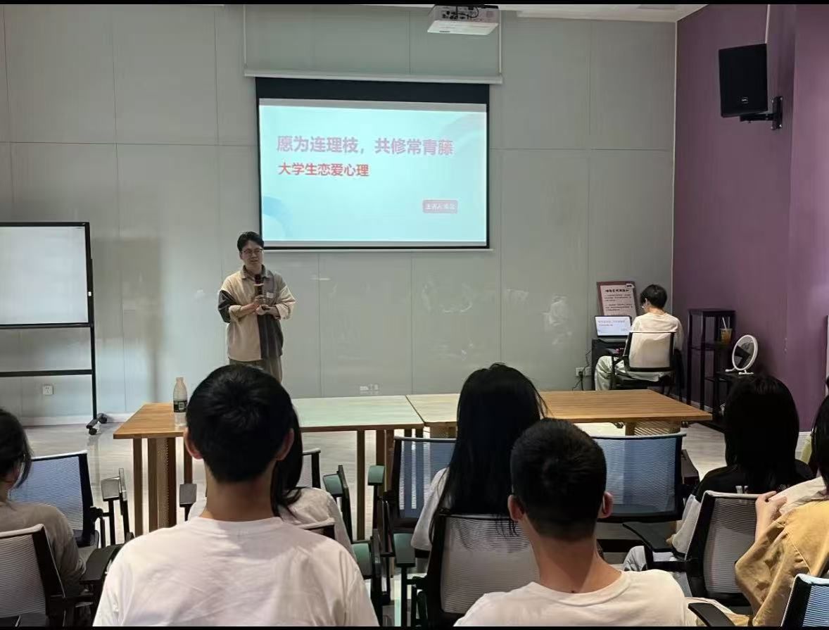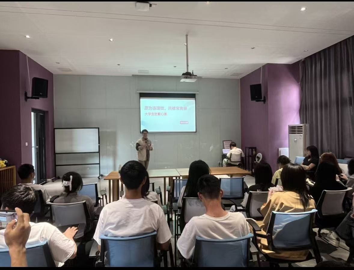 为扩展师生眼界,放下手机,提升学生情商及思维。申昱老师及其异科成员于5月15日下午4点在观云书院小雪功能室进行“愿为连理枝,公休常青藤”主题的大学生心理健康宣讲活动。