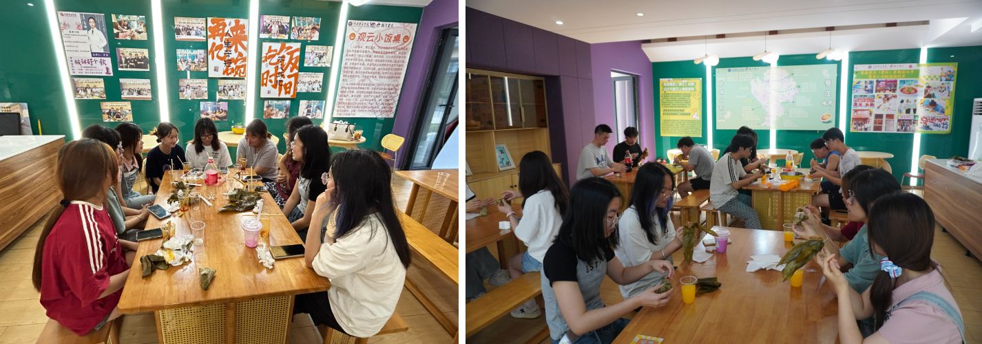 活动结束后,谢老师总结道:“虽然我们不涉及课程教学,但通过这样的互动,希望能更好地陪伴大家成长,帮助你们在学业和生活中找到方向。”同学们也纷纷表示,期待未来能有更多类似的交流机会,让师生关系更加紧密。此次端午共膳活动不仅让师生共同体验了传统节日的氛围,更在轻松愉快的交流中加深了彼此的了解,为异科导师与学生之间的情感联结增添了温暖的一笔。