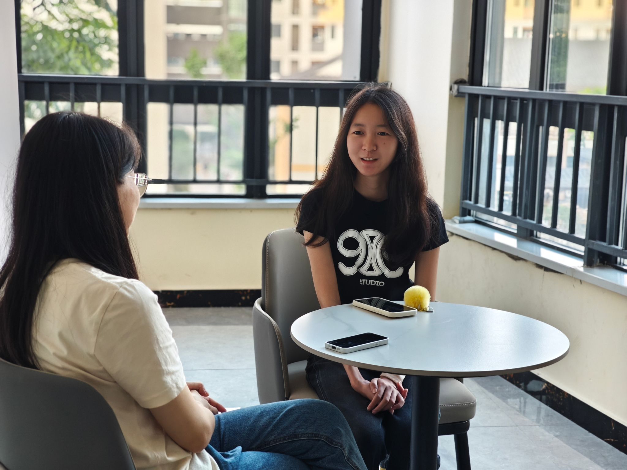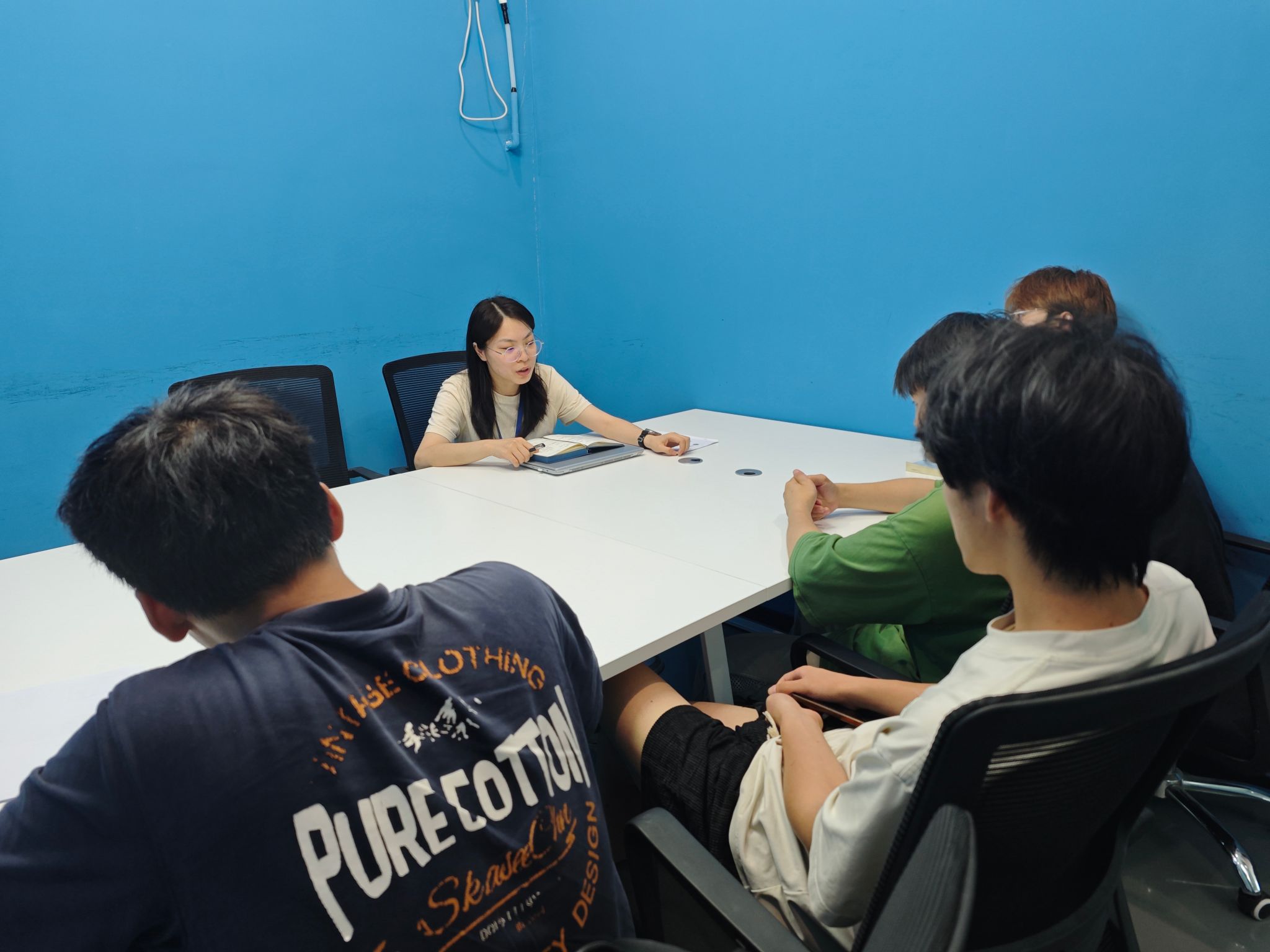 与4名学生进行交流座谈时,学生依次分享了个人职业目标及当前困惑,分别表示想往视频制作剪辑、新媒体运营等方面进行发展,但对于简历、面试技巧等方面缺乏信心。尹老师结合每位学生的专业背景、实习经历及兴趣特长,逐一分析可行路径,建议大家先了解相关岗位技能要求,有计划的学习,同时介绍了当前就业市场的变化趋势,企业更看重“专业技能+软实力”的复合型人才,建议学生不仅要夯实专业基础,还需提升沟通协作、项目管理等能力,以增强竞争力。此外,还分享了往届优秀毕业生的就业案例,帮助学生拓宽求职思路。