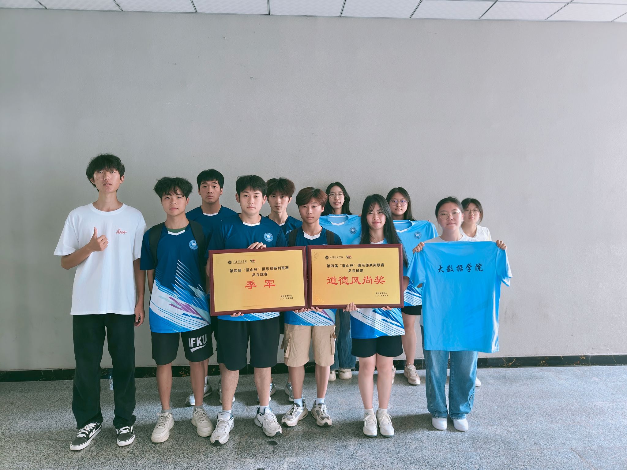 第四届瀛山杯俱乐部系列联赛圆满落幕,大数据学院体育健儿在赛场上奋勇拼搏、屡创佳绩,最终收获女篮冠军、男足亚军、男篮季军、乒乓球季军以及道德风尚奖,用汗水与实力书写了属于学院的荣耀篇章。