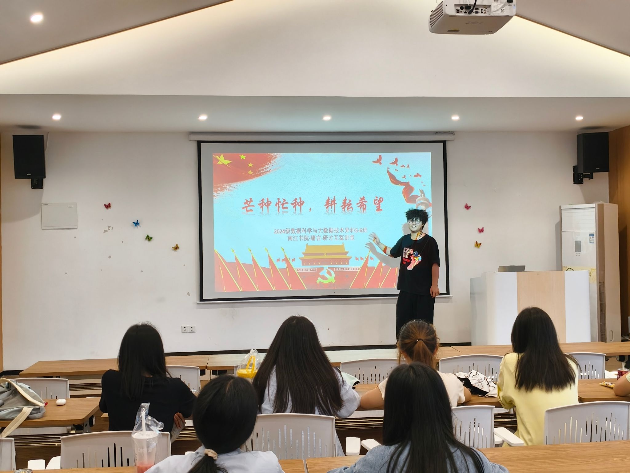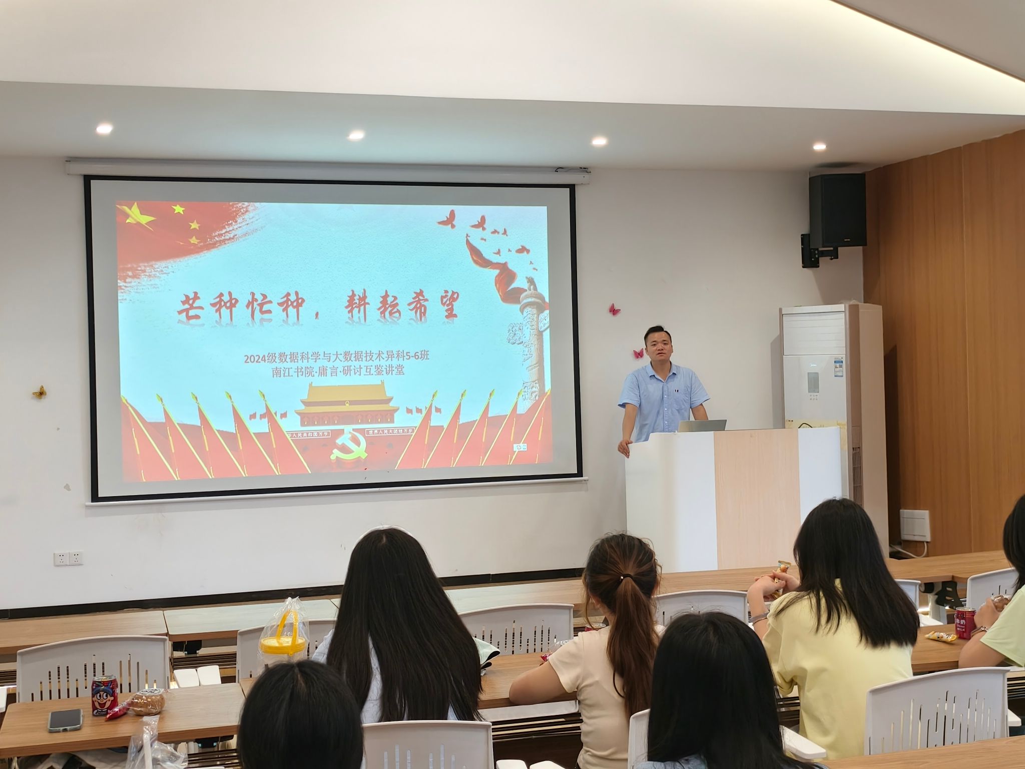 在中国传统节气芒种之际,大数据学院数据科学与大数据技术2024级异科5-6班2025年6月5日在南江书院庸言·研讨互鉴讲堂举办了一场别开生面的“芒种忙种,耕耘希望”主题班会见面活动。本次活动将传统农耕智慧与现代大数据专业特色相结合,通过创意互动、学业规划分享和团队建设等环节,为异科班级播下希望的种子。