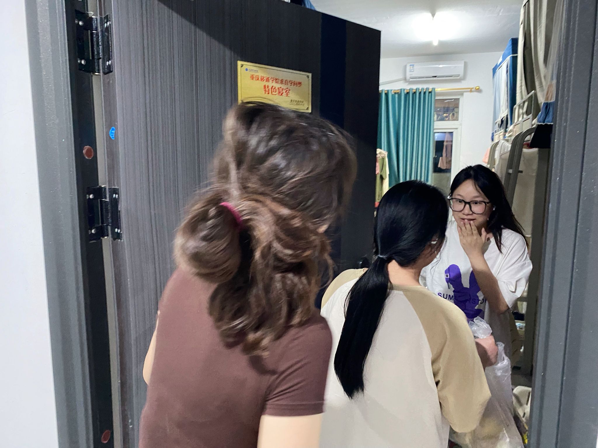 夜幕笼罩校园,郝月霜老师逐间走访宿舍。查寝过程中,郝月霜老师不仅仔细检查宿舍卫生、安全用电等情况,还与学生们亲切交谈,询问他们的日常生活、学习进度和遇到的困难。“最近课程学习压力大不大?有没有遇到什么难题?”每推开一扇宿舍门,郝老师总是先露出亲切笑容,关切询问。面对学生提出的关于专业课程学习方法、职业规划等方面的困惑,导师们结合自身经验,一一给予详细解答。