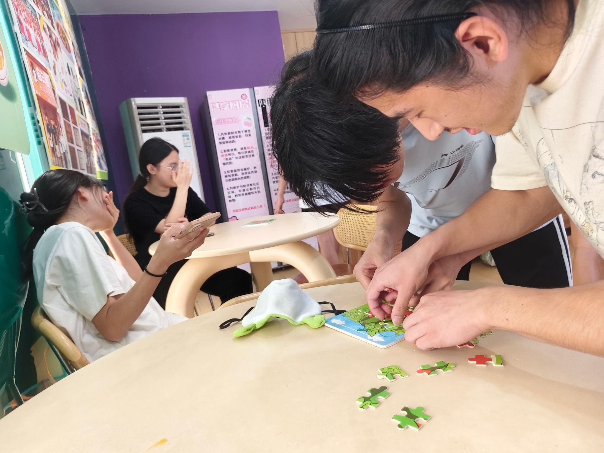 瓜肉尽处趣味未歇!完成吃瓜挑战的队伍旋即投入创意拼图环节。队员们围坐协作,指尖在拼图碎片间默契配合。这不仅考验眼力与手速,更是策略思维与团队凝聚力的无声较量,将活动的智力与娱乐色彩推向更高潮。