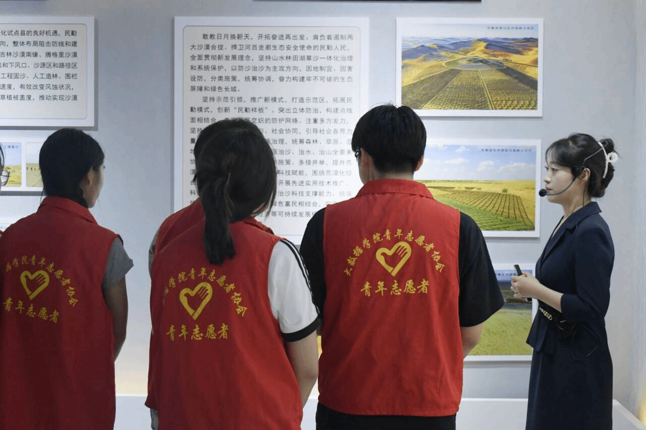 在治沙防沙纪念馆,60岁的出租车司机聂正资与团队成员侃侃而谈“我曾在粮站干了18年,下岗后跑出租,幼时家无隔夜粮、风沙卷走农田的苦日子,现在成了年轻人治沙的‘活教材’。”班车司机展示的手机相册里,00后志愿者用无人机航拍治沙区的画面正在抖音热传,让“沙尘暴源头治理”从口号变为可计算的坐标。放弃外地工作的讲解员看着满墙荣誉:“1950年先辈用破铁锹治沙时,森林覆盖率不到5%,如今18.28%的绿意为这片土地镀上生机。”这不是终点,而是新征程的起点,治沙精神必将在一代代人的接力中永续传承!