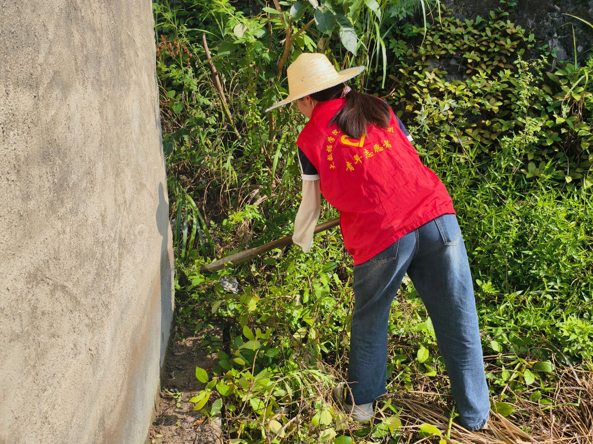 在路口石碑处创作的志愿者,首先清理石碑周围杂草,营造整洁的绘画环境。随后,他们根据绘画内容合理分配颜料,并进行细致的分工合作。
