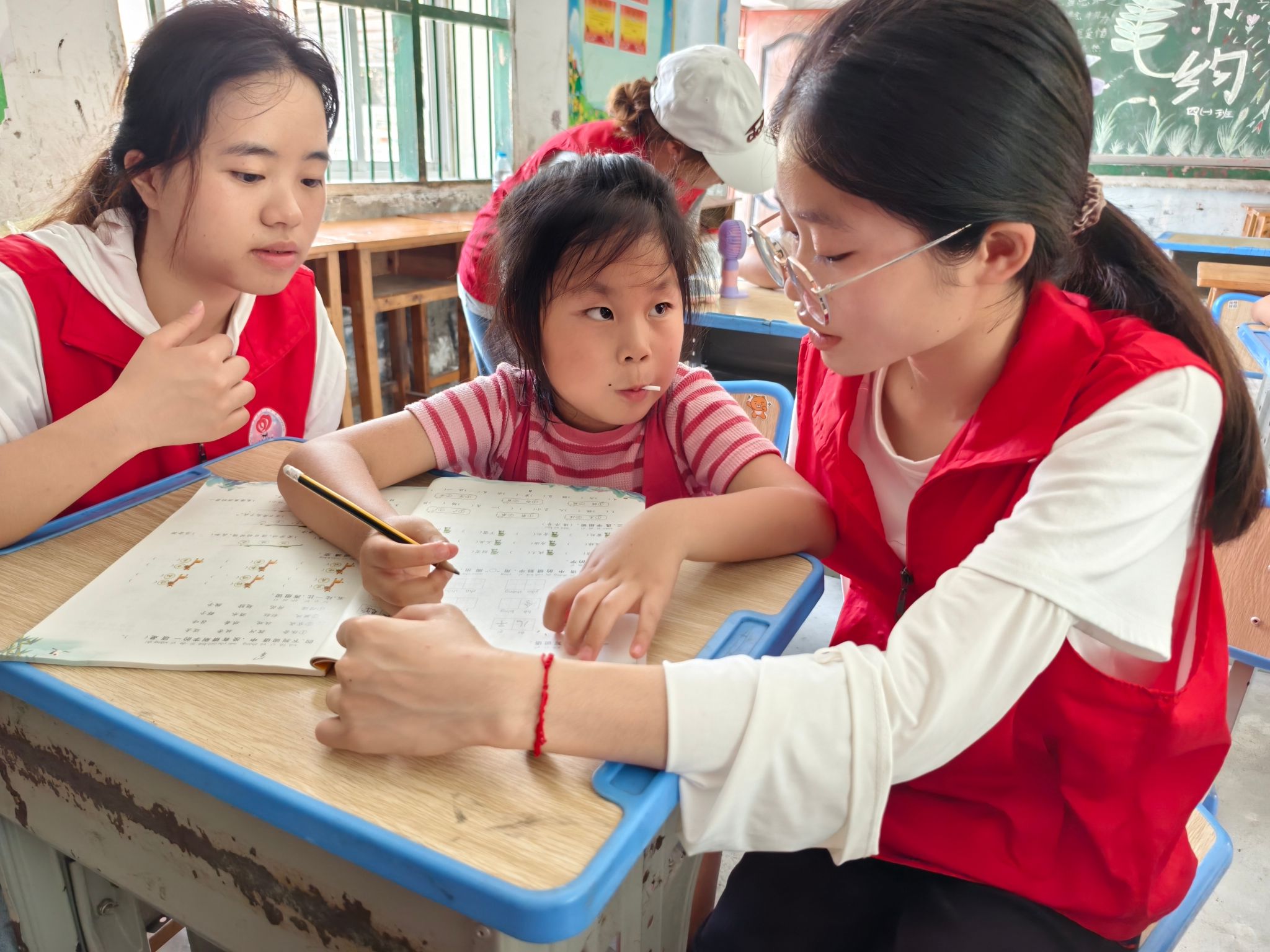 2024级虚拟现实技术3班吴京晏同学,于2025年7月5日在重庆市綦江区石壕镇参与了针对留守儿童的志愿服务活动。上午,她陪同孩子们完成物理小实验,一同探索科学乐趣,随后开展防溺水安全教育宣传,提高对科学的兴趣,保护生命的安全。下午,在万隆小学的线下彩虹课堂中,她辅导一名小学生完成假期作业,引导孩子快速解决遇到的难题。此次服务让她深切体会到,留守儿童不仅需要物质关怀,更渴望陪伴中的理解与引导。能成为孩子们探索世界、解决难题时的“同行者”,这种被需要的感觉让她倍感踏实。
