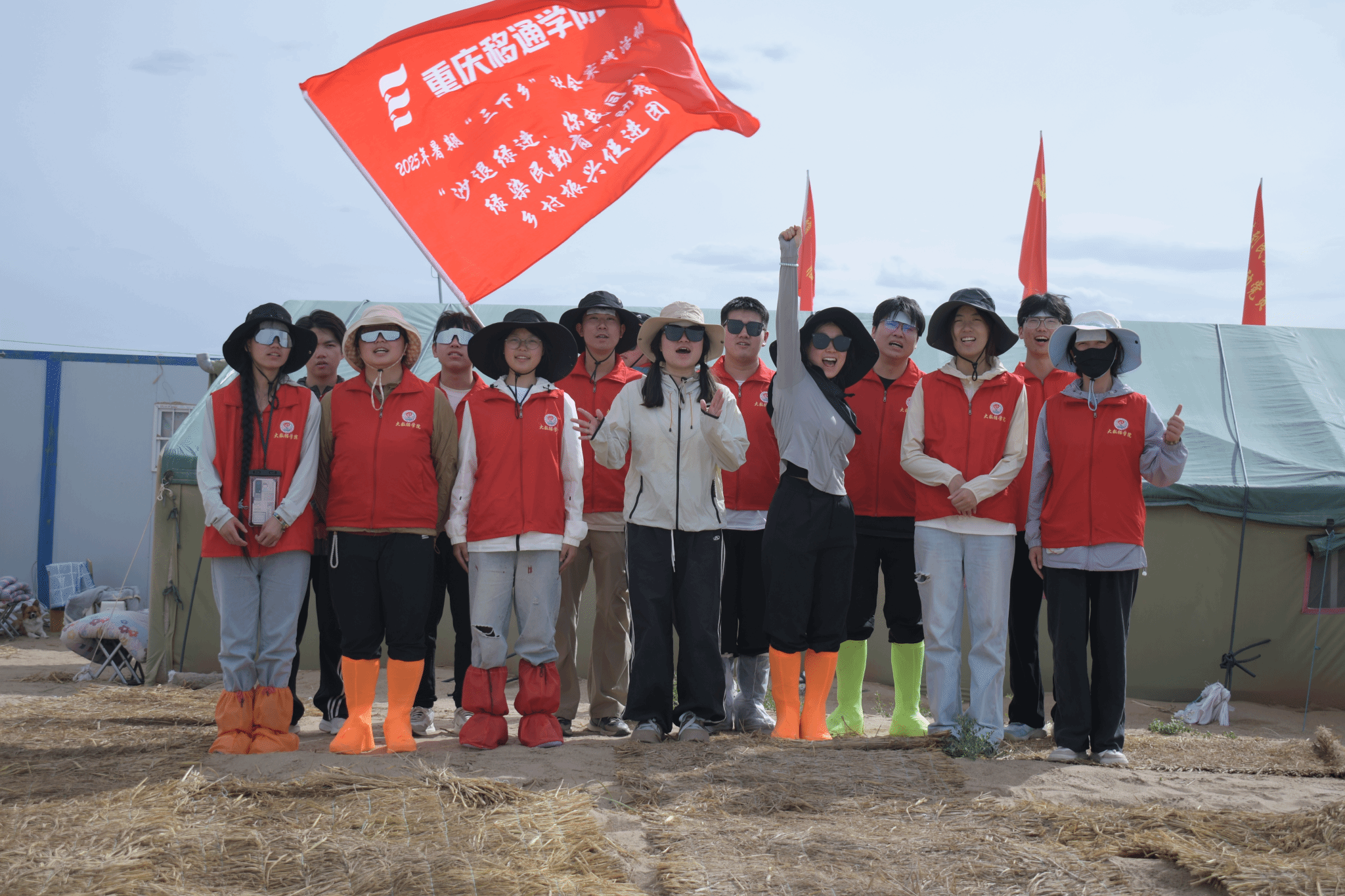 2023级数字媒体技术9班刘霜同学从重庆前往甘肃民勤,开启“三下乡”社会实践之旅,既是治沙参与者,也是绿色故事记录者。每天清晨,她参与梭梭维护,在触碰顽强生长的枝条中体会生命力量。作为宣传负责人,她用镜头捕捉队友们的笑脸,用文字记录治沙人的坚守,看到自己拍摄的照片登上当地媒体时,疲惫化为喜悦。整理蜜瓜草垛时的瘙痒、修缮基地时浸透衣衫的汗水,都不及采访治沙老人潘叔时的触动——老人粗糙的手与发亮的眼神,诉说着代代治沙人的执着。七天里,她参与墙绘、物资整理等工作,深刻理解“沙漠不退,我们不退”的誓言,明白青春的意义在于脚踏实地的付出。这段旅程让她知晓,社会实践是心灵贴近土地,在民勤播下的不仅是梭梭种子,更是希望种子,期待来年见证绿色生长。