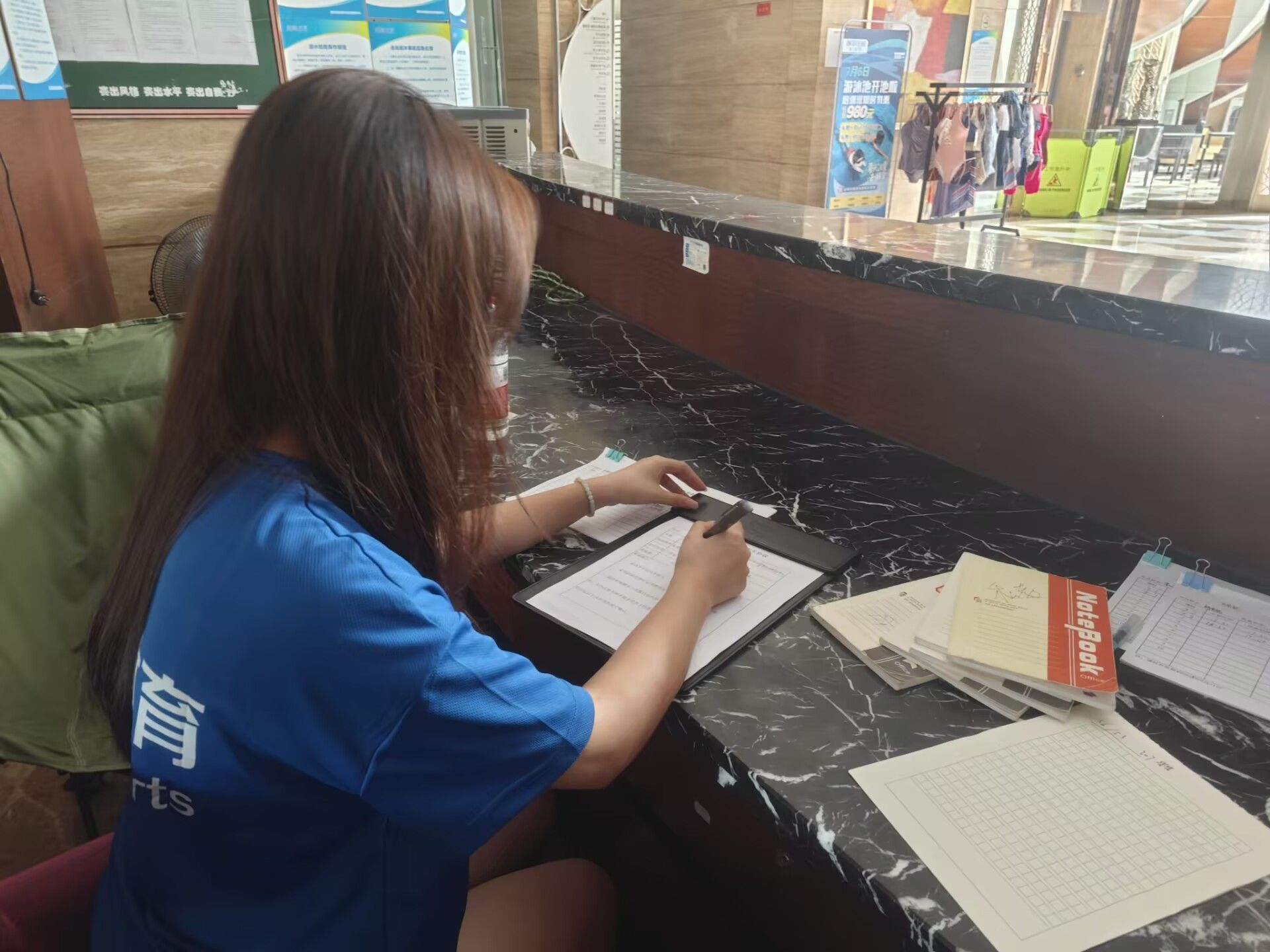 2024数字媒体技术7班的周女粮同学投身于博浪体育游泳池的前台,每日清晨她都会提前15分钟到岗。用琐碎的准备工作,保障服务有序开展。值守时间里,她学会了在忙碌中保持从容,用清晰的指引和耐心的解答回应每一份需求。日均70余人次的接待量让前台变成"战场"。她和同事分工协作,默契在一次次配合中悄然生长。服务不是机械执行流程,而是用真心换真心。在突发状况中她明白:服务中的同理心比刻板规则更重要,应变能力就在这样的历练中不断提升。当实践的热情与家乡的需求相遇,平凡的岗位也能绽放光芒。