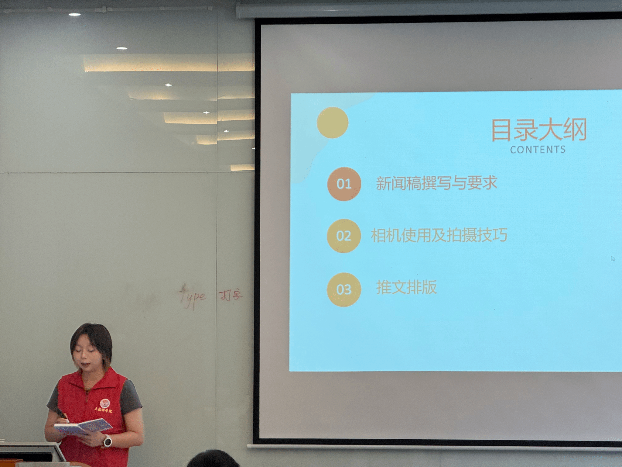 培训会开始,主持人以图文结合和示例讲解的方式详细介绍了新闻稿的撰写要点和要求,为后续宣传推广等工作打下坚实基础。