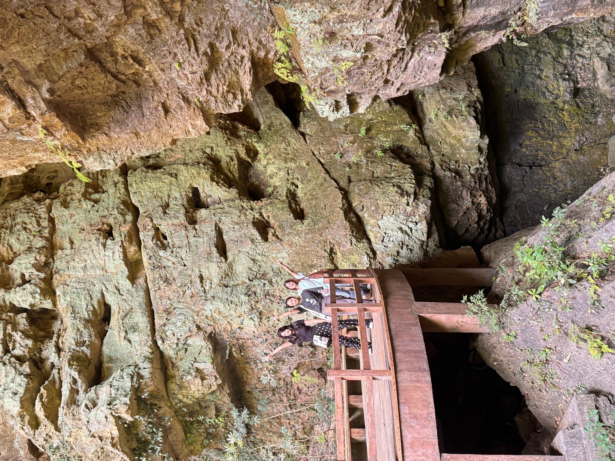师生三人并未急于赶路,而是放慢脚步与自然互动。麻锶晗蹲在溪边,小心翼翼地用手掬起溪水,观察水中游动的浮游生物;高建欣则捡起岸边光滑的鹅卵石,和导师一起讨论不同石头的纹理。中途休息时,三人坐在溪边的石阶上,一边用树枝拨弄溪水、看涟漪扩散,一边畅谈大学生活:从“如何平衡专业学习与社团活动”,到“面对学业压力时的调节方法”,再到“未来职业规划中的兴趣导向”,轻松的对话里满是成长的思考。临近中午,师生还在浅水区一起戏水,用溪水擦拭额头的薄汗,清脆的笑声伴着流水声,成为峡谷里最鲜活的风景。此次实践不仅让学生在自然中释放了学业压力,更在轻松的玩水体验中深化了师生情谊,培养了观察自然、联系专业的思维能力。