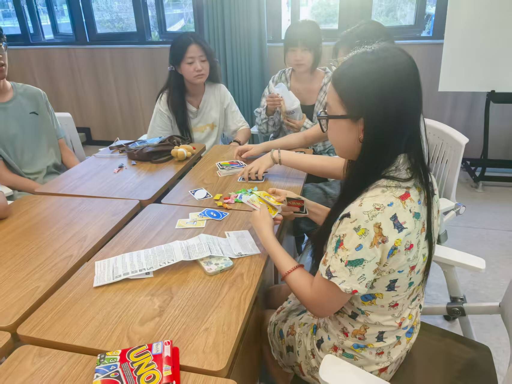 活动现场,尹欣导师精心准备了经典的大富翁和UNO等桌游。大富翁的世界里,大家化身精明的投资者,在虚拟的商业版图中纵横捭阖,每一次掷骰子都牵动着众人的心弦;UNO的赛场上,紧张刺激的氛围弥漫开来,大家全神贯注,出牌时的果断与偶尔的小失误都引发阵阵欢笑。