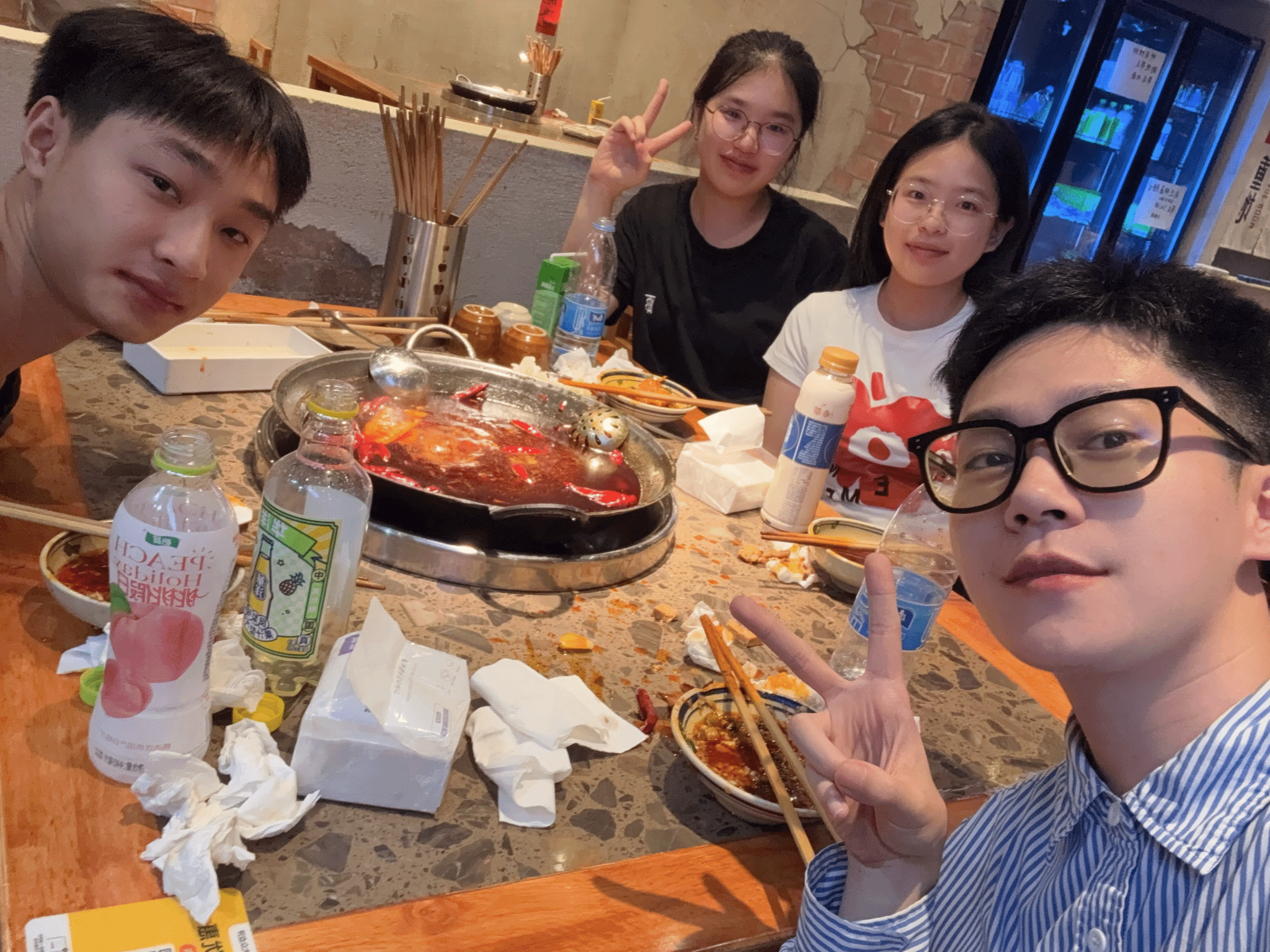 傍晚六点,温老师和学生们准时到达火锅店。店内环境温馨,香气四溢,大家很快在欢声笑语中落座。温老师亲切地询问了每位学生的近况,从学业压力到生活趣事,话题轻松而广泛。学生们也纷纷分享了自己的学习心得和跨科选修的体验,气氛活跃而自然。