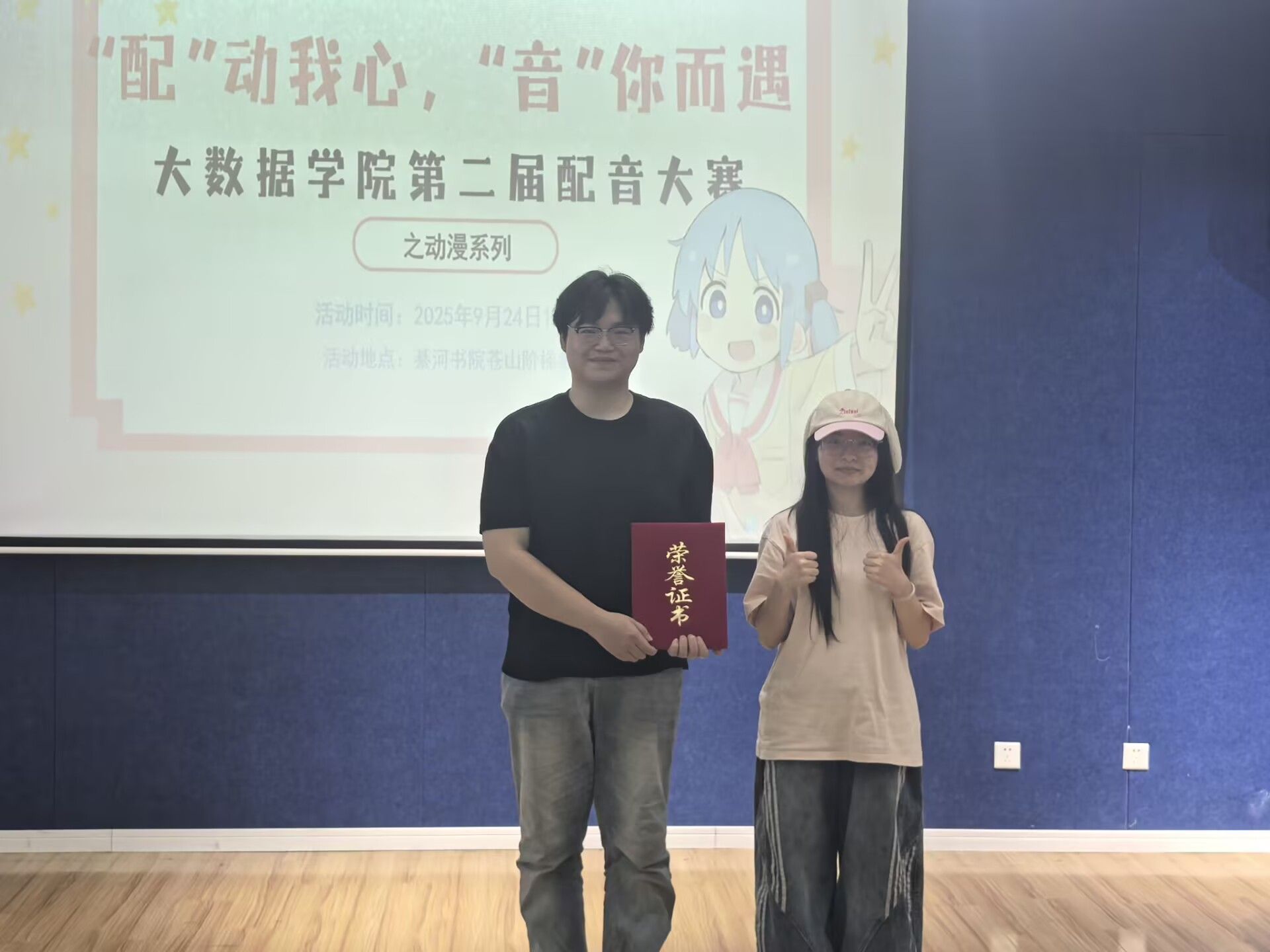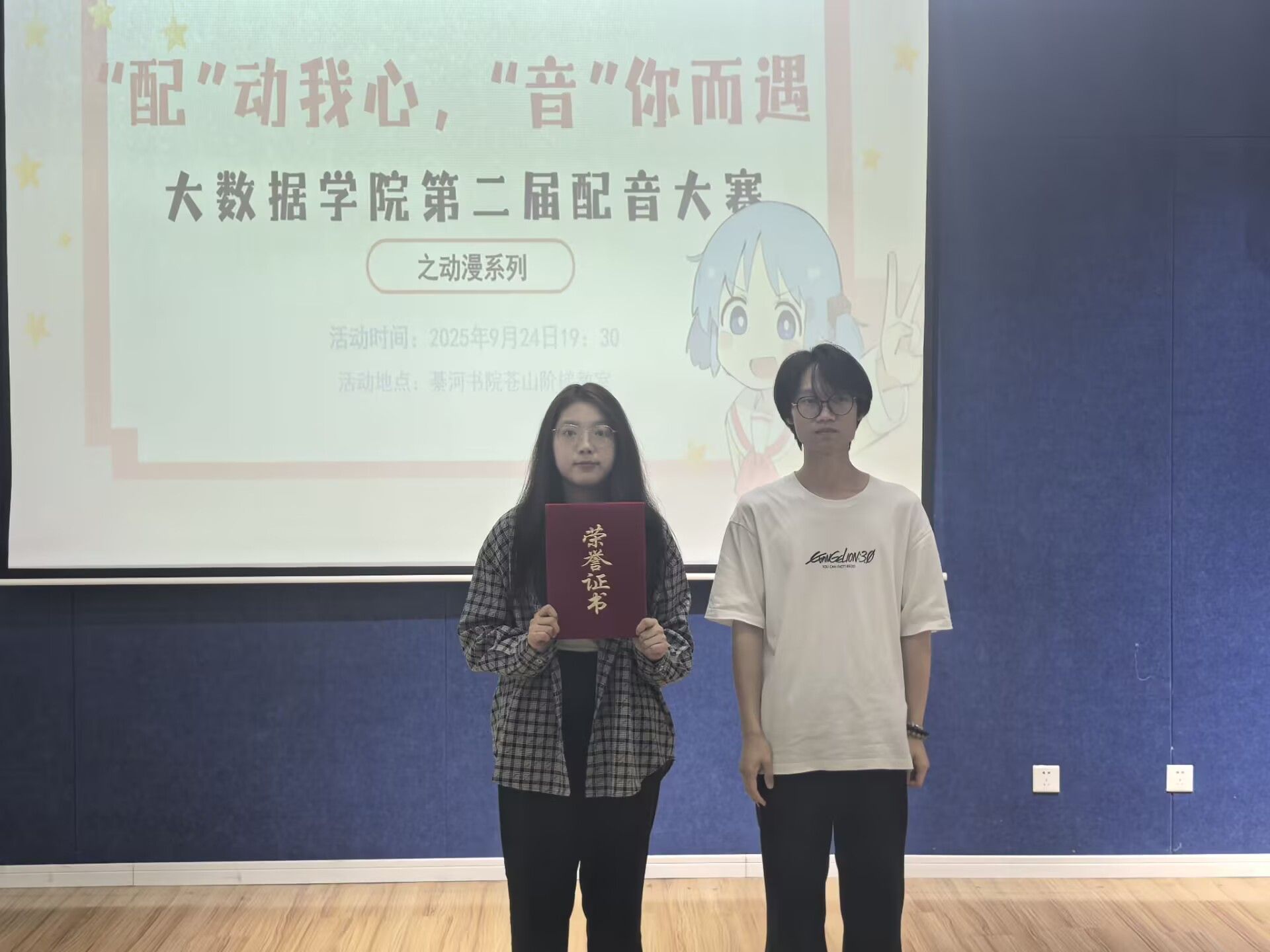 为搭建配音艺术展示平台,丰富校园文化生活,2025年9月24日19:00,“配”动我心,“音”你而遇——大数据学院第二届配音大赛之动漫系列在綦河书院苍山阶梯教室如期举行。