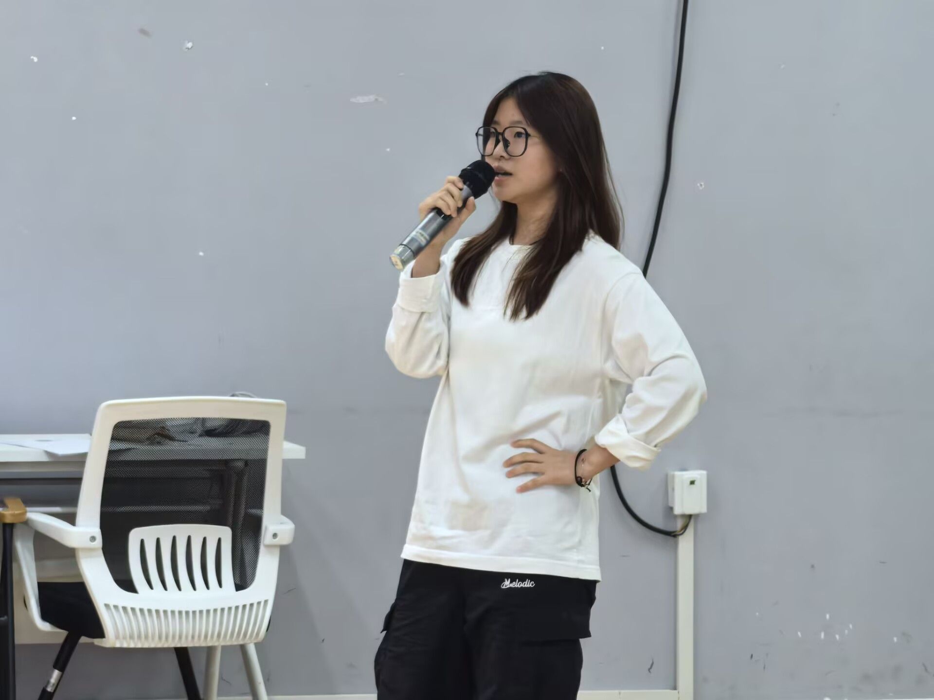 活动现场灯光璀璨,观众们手持坐垫有序就座,气氛热烈,充满期待。十位参赛选手按抽签顺序依次上场,展现配音实力。任秋静同学用《清泉之声》开场,她精准拿捏动漫角色语气与情感,时而深沉厚重,时而活泼灵动,三分钟的配音片段将动漫场景生动重现,相似的语调与饱满的情感让现场观众频频鼓掌。