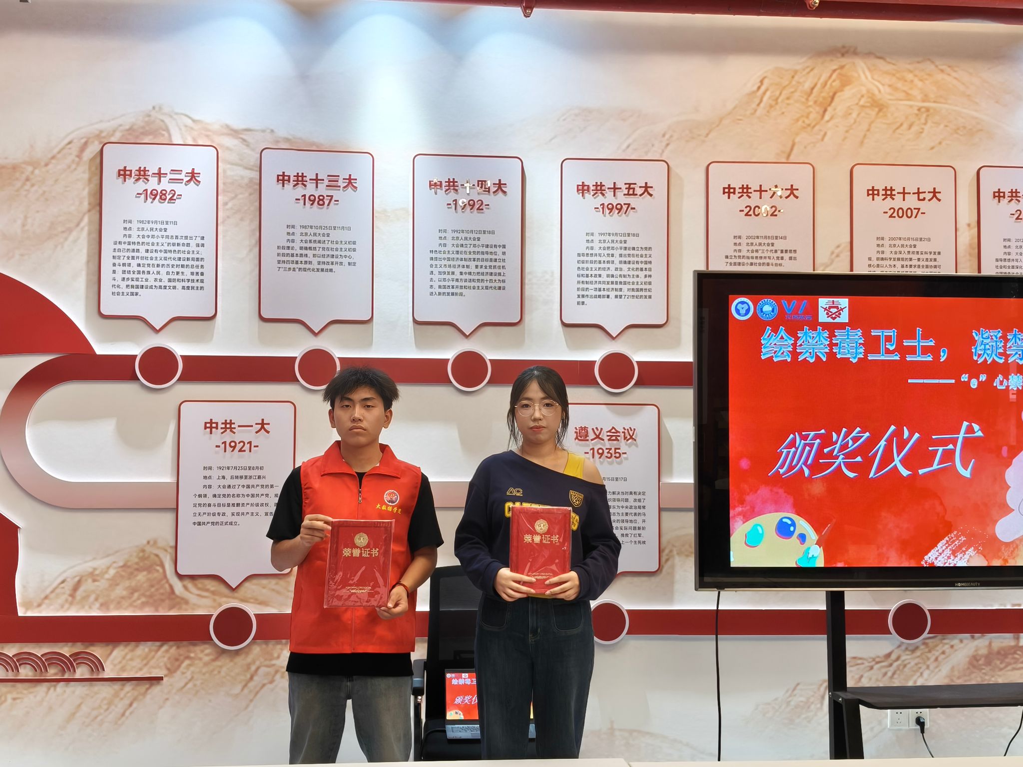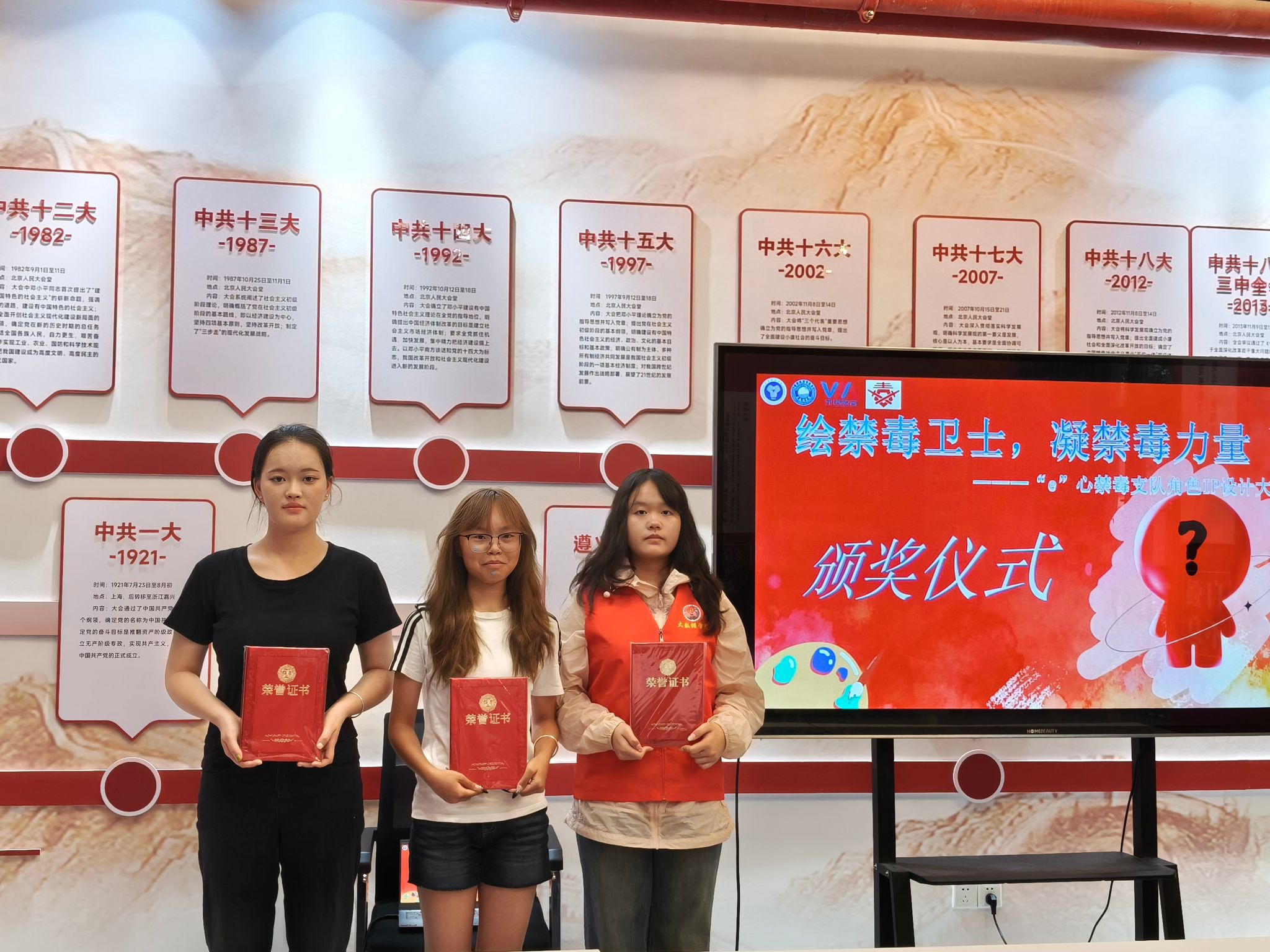 颁奖环节由主持人依次公布获奖名单,获奖队伍现场领奖并合影。此次赛事不仅提升了学生的禁毒创意表达能力,也激发了更多青年参与禁毒宣传的热情。
