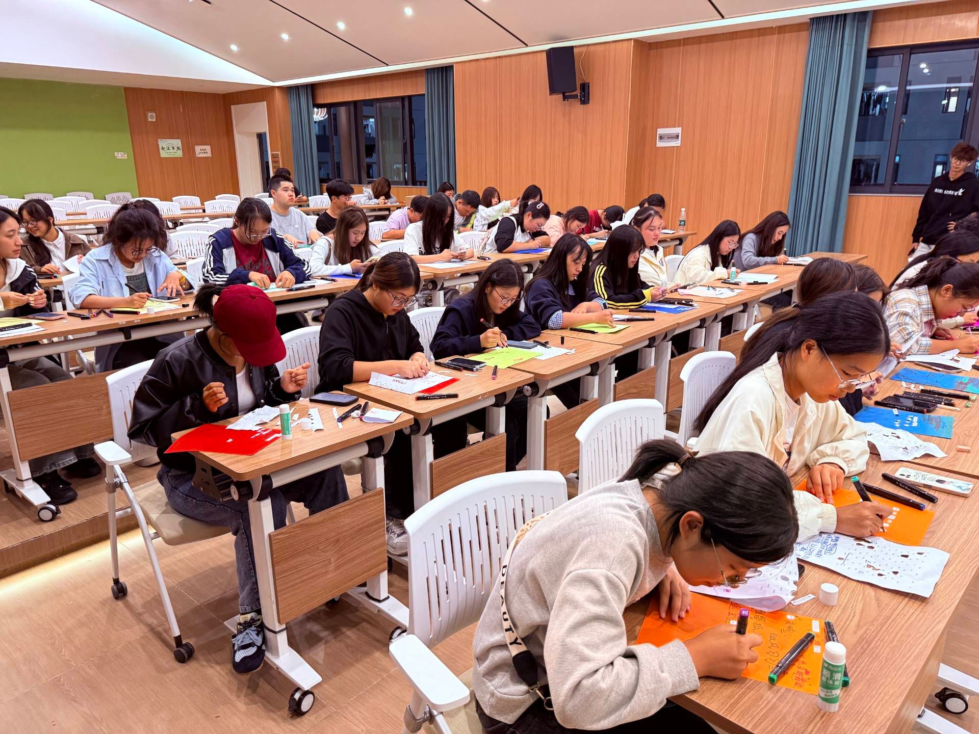 活动正式开始后,主持人首先向现场参与者详细讲解了活动流程,明确各项具体要求。待主持人宣布创作环节开启,同学们便迫不及待投入“拼诗”创作:大家充分发挥艺术创意,在卡片空白处精心绘制精美插画,最终完成了一幅幅兼具诗意与美感的优秀作品。