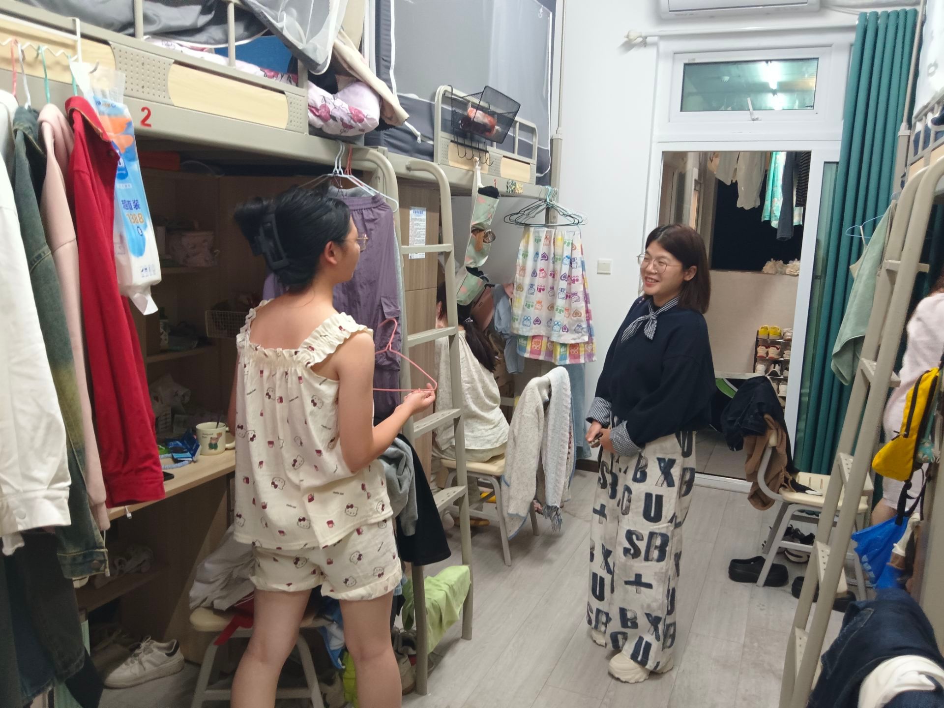 “最近学习还跟得上吗?”“大二了,有没有什么新的规划?”每到一个寝室,肖老师都亲切地与同学们交谈,仔细倾听大家进入大二后的适应情况和对未来的思考。她像一位知心的朋友,又像一位经验丰富的引路人,耐心解答着同学们在专业学习、能力提升和未来发展方面的种种困惑。