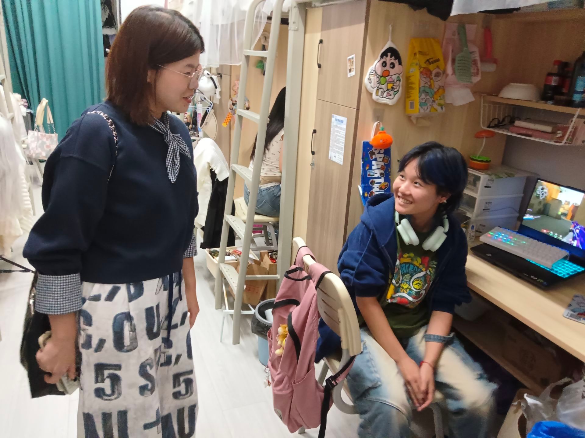 10月19日21:30,当校园逐渐沉寂,宿舍楼里却亮起了一盏盏温暖的灯。异科导师肖琳老师利用晚间休息时间,带着满满的关怀,逐一走访了2024级虚拟现实技术1班与数字媒体技术10班的学生寝室,在这个微凉的秋夜为同学们送去了别样的温暖。