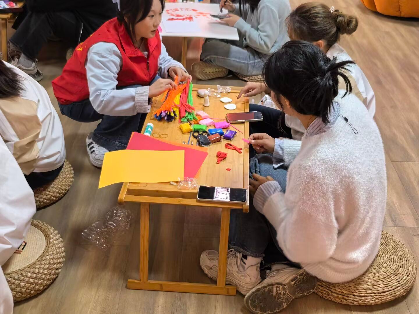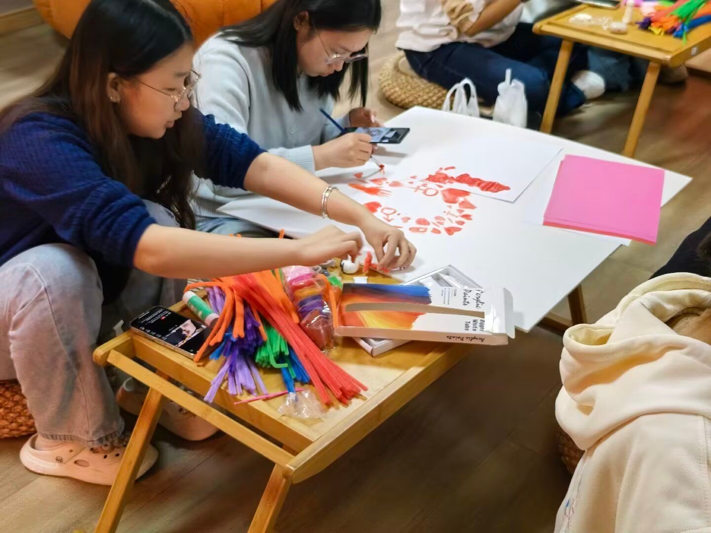 10月24日下午,天使关“艾”志愿服务专项支队在古剑书院白虹.半间闲室举办了“指尖传爱,共筑无艾防线”防艾主题手工拼贴画创作活动,16名在校大学生以扭扭棒、黏土为“笔”,以KT板为“纸”,将防艾知识与人文关怀融入艺术创作,让“防艾不防爱”的理念在指尖流转、在校园扎根。