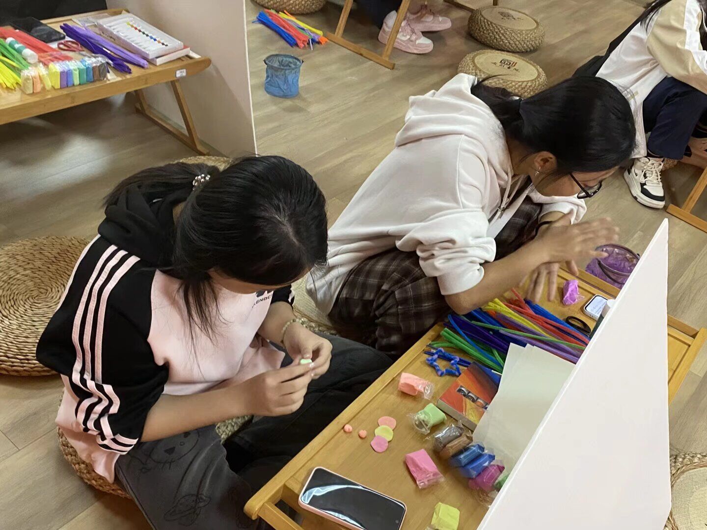 在这场手、脑并用的创造中,防艾知识完成了从“知晓”到“理解”再到“认同”的深层内化。活动现场弥漫着专注与温暖的气息,同学们在低头创作的同时,也在进行一场静默的内心对话。如何用扭扭棒传递关怀?如何用一个形象消除误解?每一个造型的斟酌,每一种色彩的搭配,都是将抽象知识转化为个人理解的过程。在作品完成后,防艾意识已嵌入每一块黏土里,缠绕在每一根扭扭棒的线条之中。