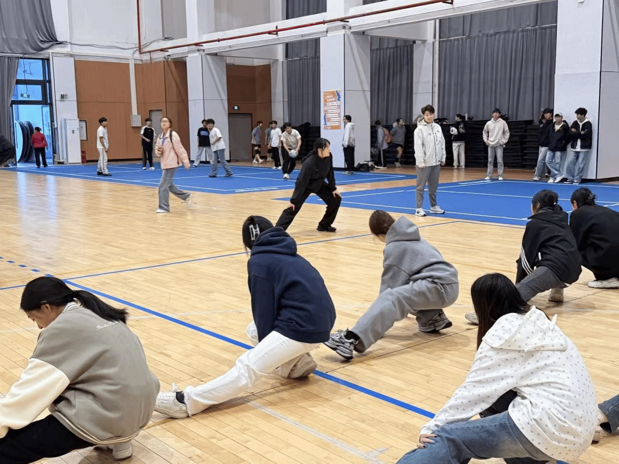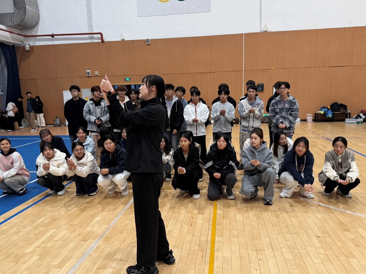 活动伊始,廖秋怡教练便以洪亮的口号和标准的动作为引领,带领所有参与者进行充分的热身准备。拉伸、高抬腿、侧身运动等一系列热身动作不仅有效激活了同学们的身体机能,预防运动损伤,更迅速点燃了全场的运动氛围。大家跟随着教练的节奏,精神抖擞,为接下来的排球初体验做好了充分准备。