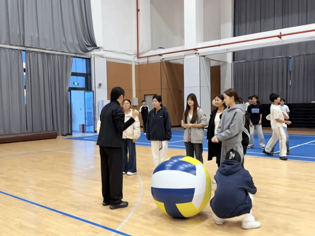 热身过后,廖秋怡教练进入了排球基础知识讲解环节。她耐心细致地为“零基础”的同学们拆解了排球运动中最核心的垫球、传球等基本手型与技术要领。从双脚的站姿、手臂的夹角,到击球时身体的协调发力,教练一边讲解,一边进行动作示范,并不时走到同学们中间,进行一对一的纠正与指导。“手臂要伸直,形成一个平面!”“用身体的力量去迎球,不仅仅是靠手臂!”教练的叮嘱回荡在馆内,同学们则聚精会神。他们不断模仿、练习,从生涩到逐渐掌握要领,脸上洋溢着求知的专注与初步掌握技能的成就感。