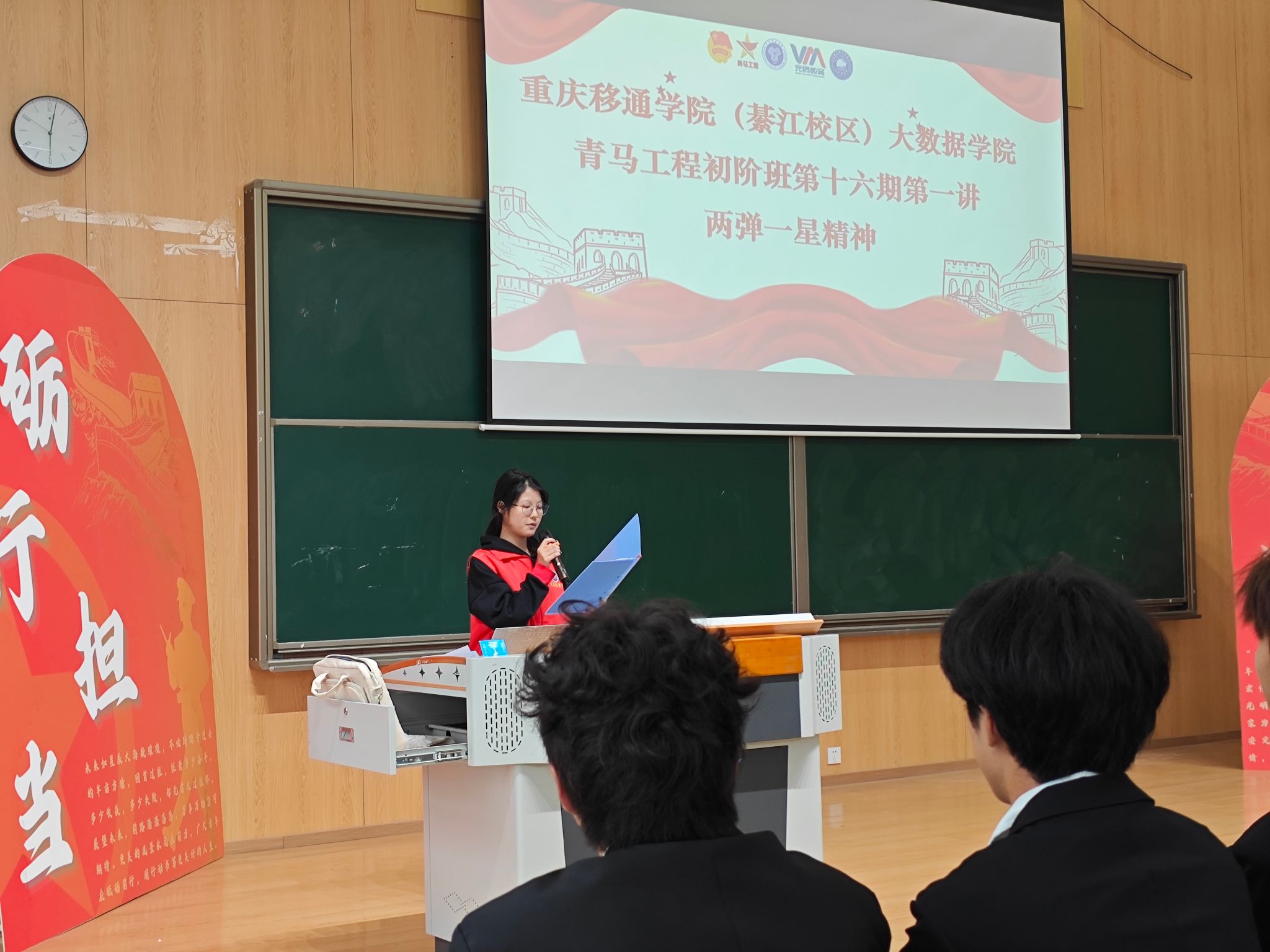 一段段历史,重现戈壁科研的峥嵘;一声声讲述,传递强国担当的力量。2025年10月31日14:00,大数据学院青年志愿者协会第十六期青马工程初阶班“弘扬两弹一星精神,争做时代青年先锋”主题宣讲会在玉棠书院阶梯教室园满结束。共159位青马学员参会,他们在历史回溯与精神解读中汲取力量,坚定了科技报国的信念。