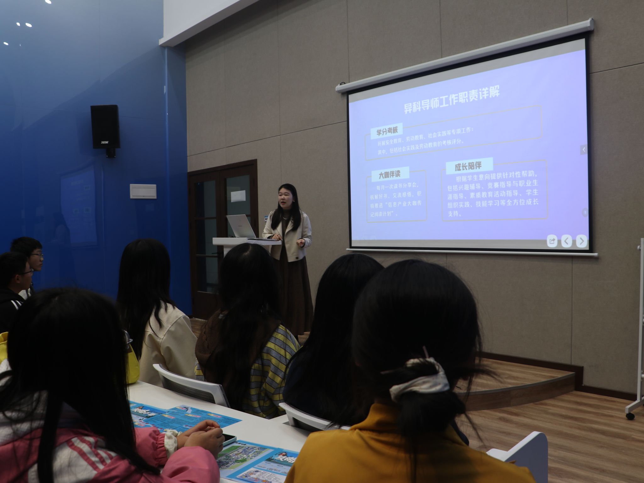 互动结束后,杨潇老师细致拆解异科导师核心职责、全方位解析导师能提供的支持,为同学们解读书院制、介绍书院的功能室配置与使用指南。