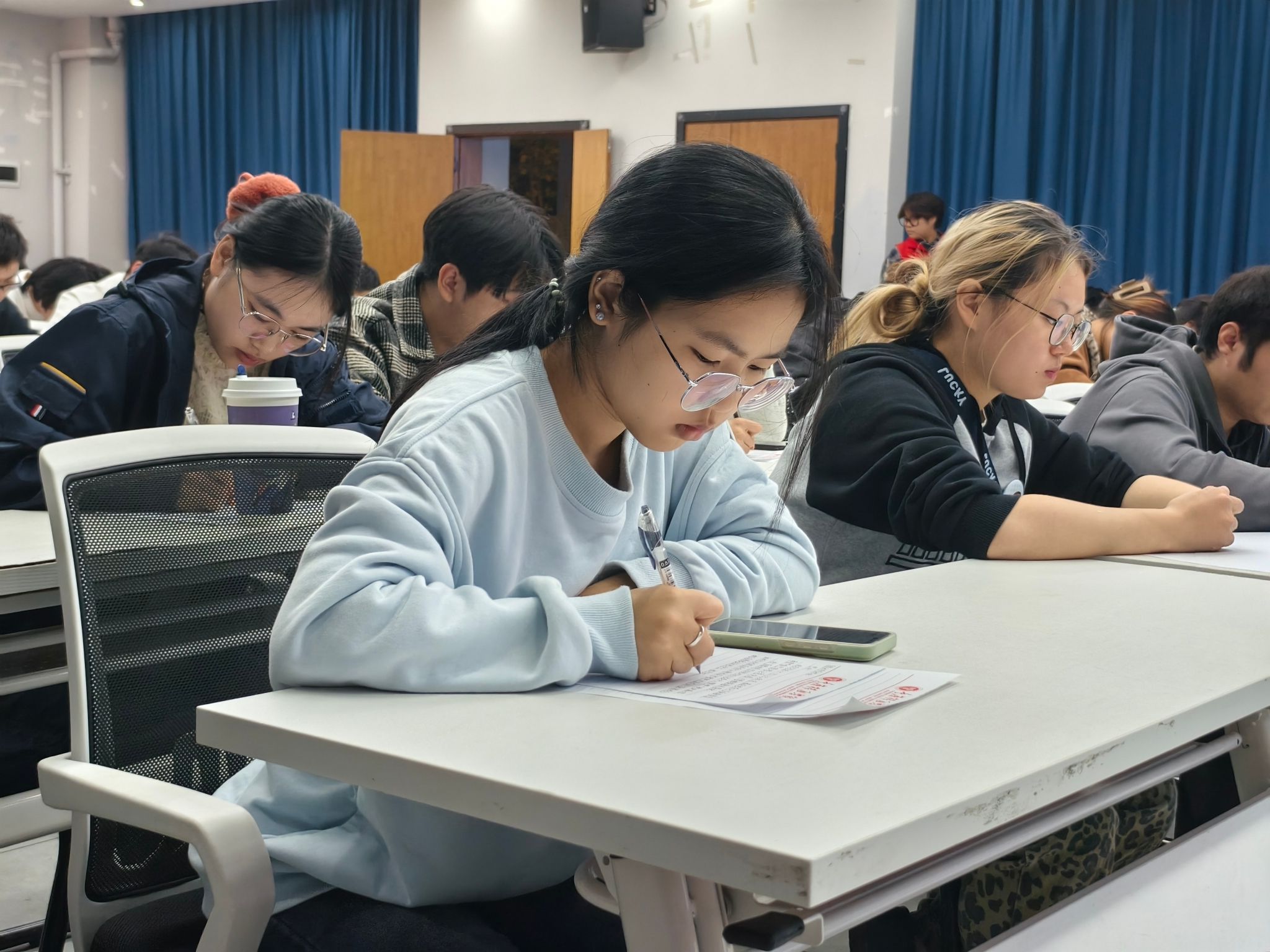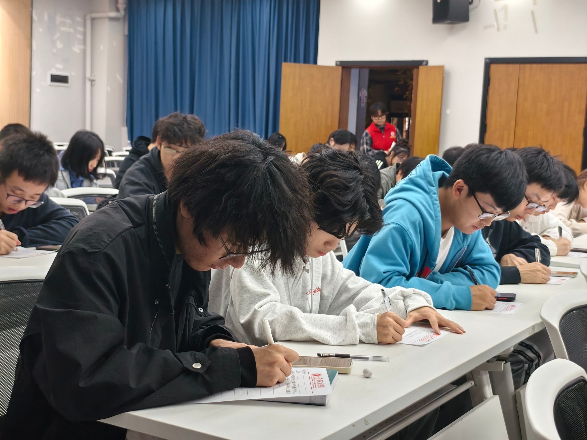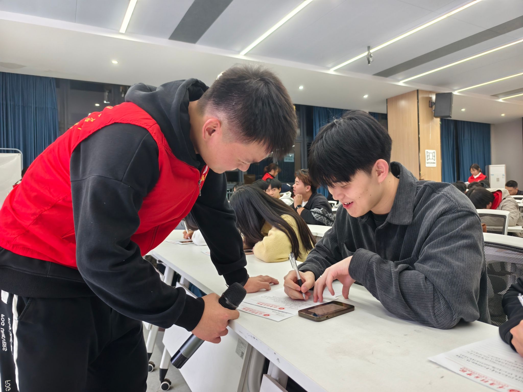 书信创作环节拉开活动序幕,同学们纷纷提笔,将心里对老人的牵挂化作一行行文字。有人写下校园里新开的桂花香,有人问起“爷爷奶奶最近睡眠好不好”笔尖轻触信纸的沙沙声,成了现场最温柔的背景音。同学们专注书写的侧面,小声的交流“我家奶奶也爱听戏”“我想教爷爷用手机”……书信完成后,不少人还主动了解 “书信展出”“养老院朗读” 等后续安排,并积极登记参与信息,期待着下一次与老人见面。