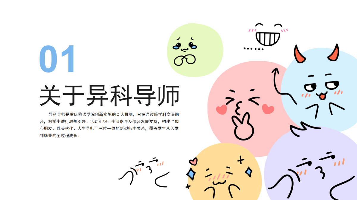 为搭建跨学科师生沟通桥梁,助力学生全面发展,积极响应学校异科育人机制建设要求,异科导师刘文文于11月6日上午在綦河书院两句·演讲培训室开展师生见面会活动。