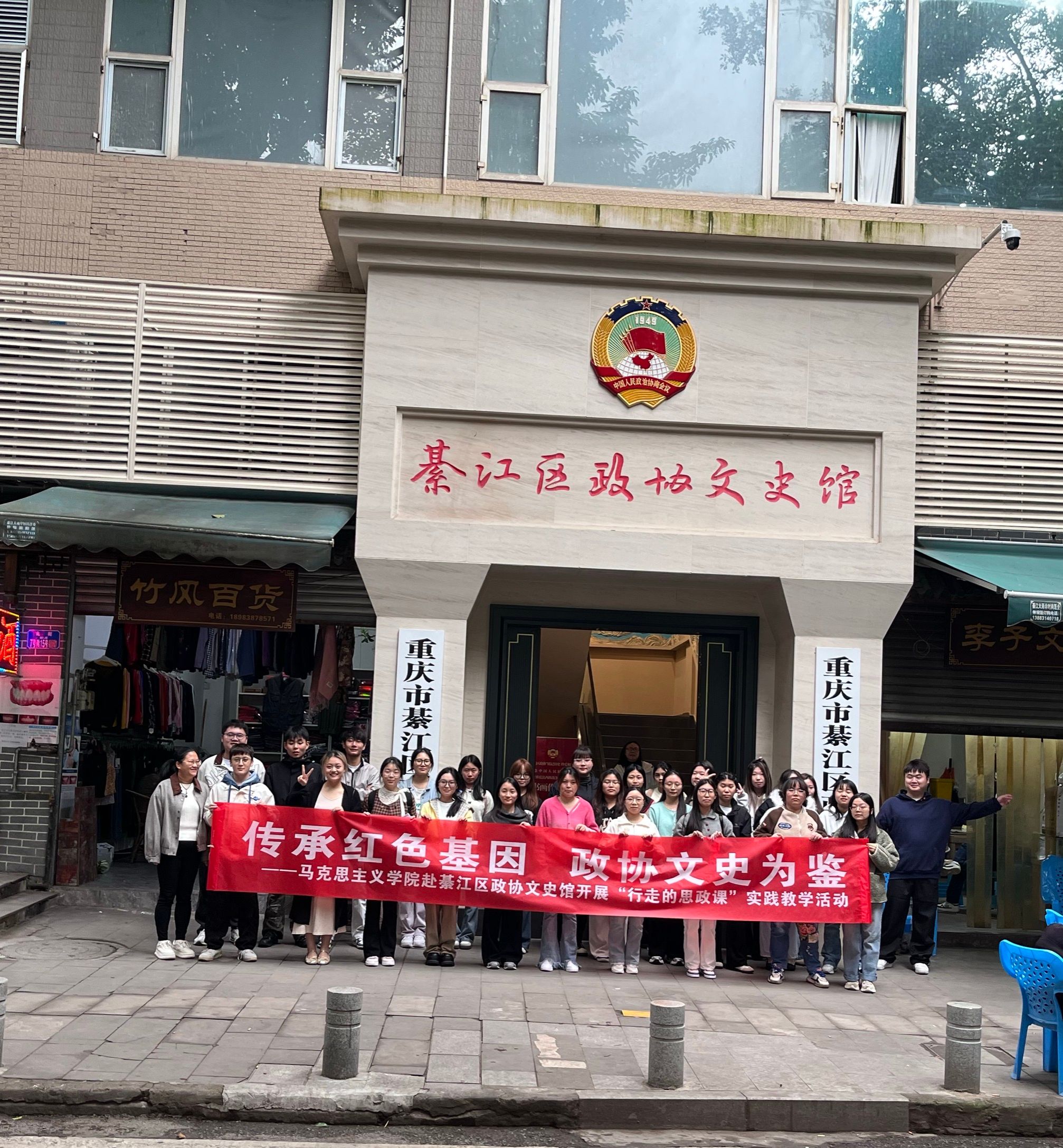 为深化思想政治理论课教学改革,引导学生在历史的回望中汲取奋进力量,2025年10月31日下午,重庆移通学院綦江校区马克思主义学院异科导师罗娅老师带领27名2024级数据科学与大数据6-7班的异科导师班学生,前往綦江政协文史馆开展以“传承红色基因 政协文史为鉴”为主题的实践教学活动。本次活动旨在打破传统课堂的边界,将思政小课堂同社会大课堂相结合,让红色基因的传承从书本走向现实,让理论知识的领悟在历史的现场得以深化。