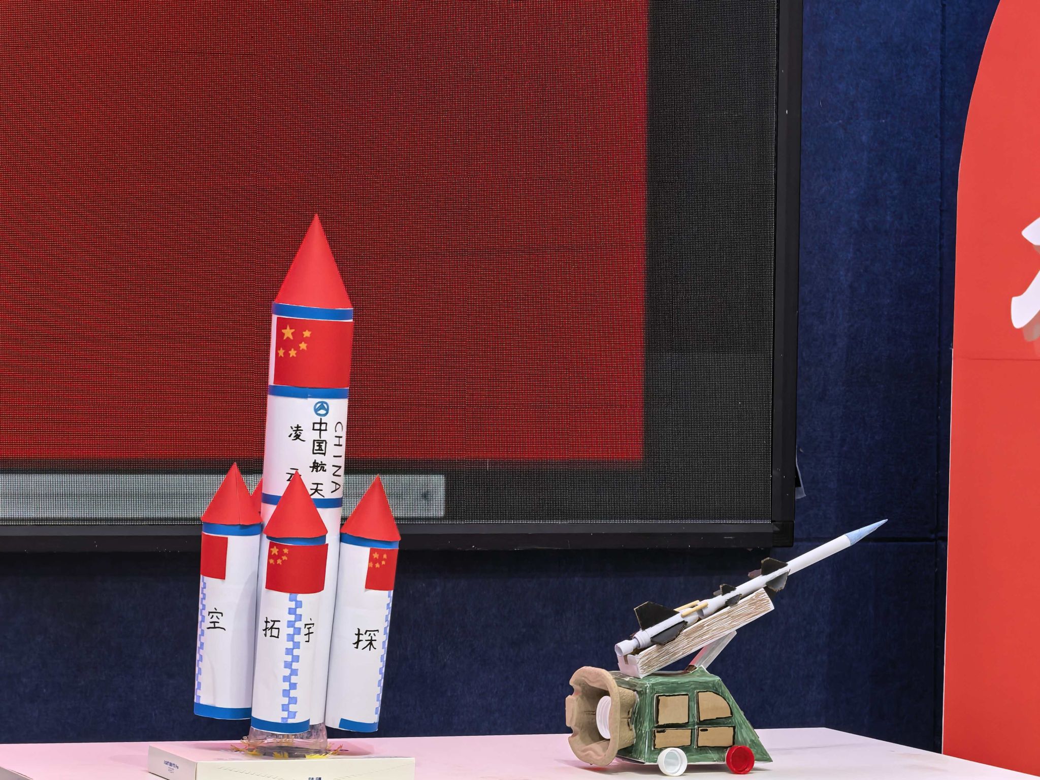 各参赛团队通过“故事化阐述”讲解团队的作品,不仅描绘了作品的设计元素与创作思路,更分享了创作中的精彩故事。一队以“东方红一号”为灵感,模型融入《东方红》乐曲片段,增加电机使模型旋转,视听结合,唤醒观众对中国首颗人造卫星的记忆;有团队以“变废为宝”的环保理念打造航天手工模型,让“重塑”成为创意与环保的结合;还有一队以三棱镜、订书针和钢钉构筑钢铁城市,用金属架还原卫星发射架,用棱镜折射的光象征中国震惊世界的高光时刻。这些作品既保留了“两弹一星”精神的历史厚重感,又通过立体模型让爱国与自强在实践中生长,在心中扎根。