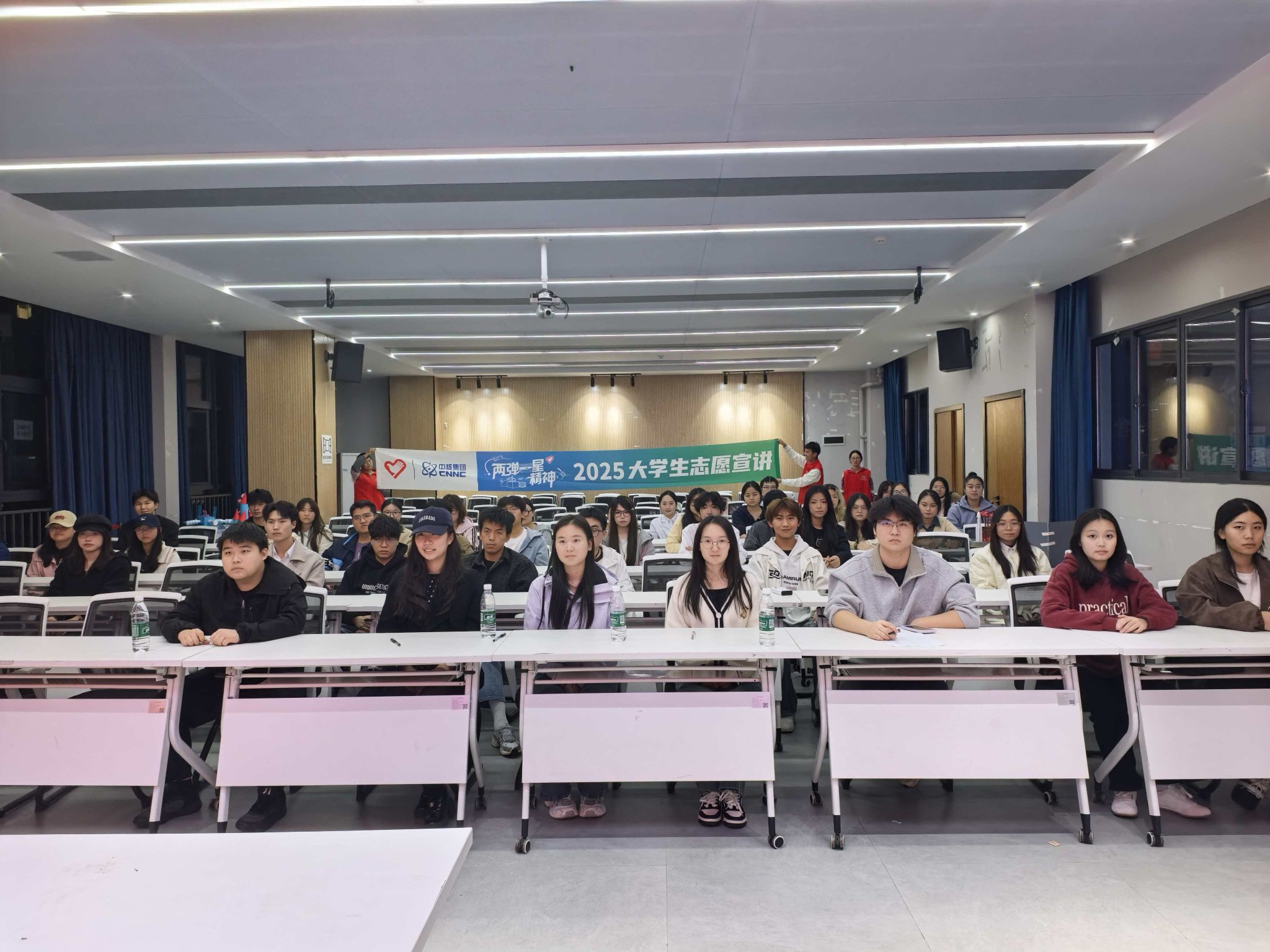 本次活动以“两弹一星”精神为核心,以IP设计、文创设计、模型设计三大赛道为载体,共收集作品300余份,经审核选出19支优秀参赛队伍,他们以创意为笔,书写新时代青年对“两弹一星”精神的理解与传承。活动伊始,主持人生动阐释了“重‘塑’功勋,铸核励能”的活动主题,旨在加深同学们对核工业历史与元勋事迹的理解,激励青年传承科学报国精神。为“两弹一星”精神的长效传播注入新活力。