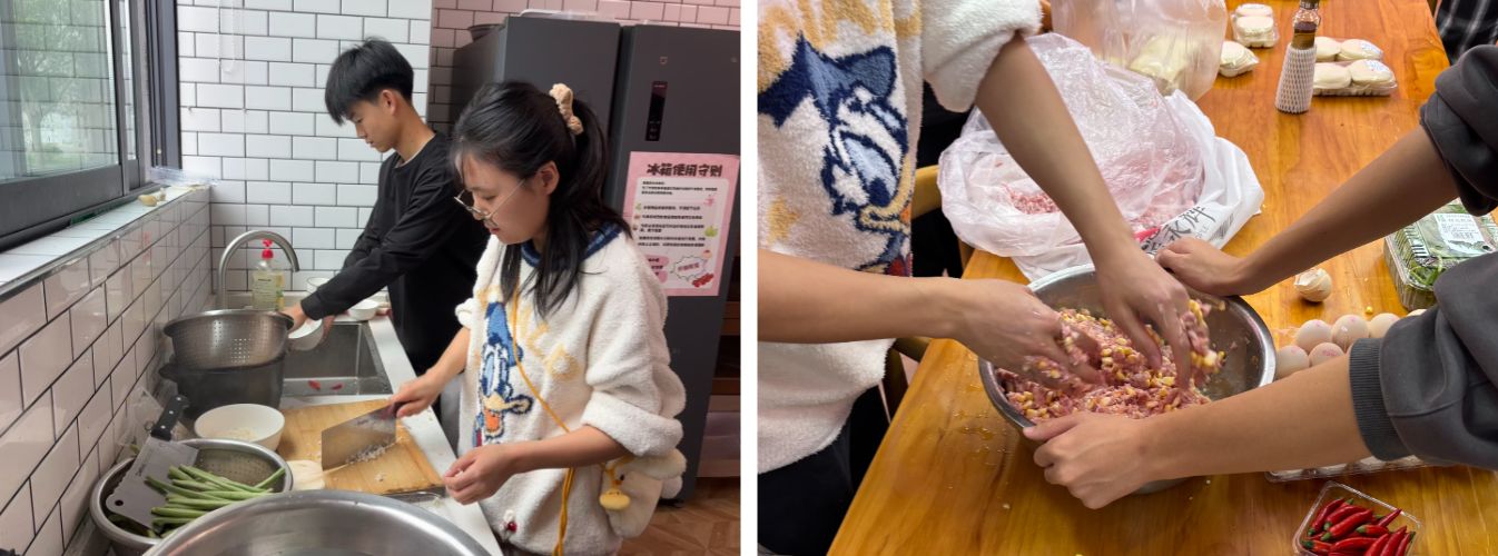 活动一开始,便没有严格的主客之分与师生之别。大数据学院与远景学院的同学们陆续抵达现场,与老师们一同投入到准备工作之中。清洗蔬菜、处理肉馅……原本可能略显陌生的空间,在共同的劳动中迅速升温,充满了“家”的温馨气息。老师们不再是讲台上的传授者,而是活动的共同参与者与身边亲切的学长学姐。