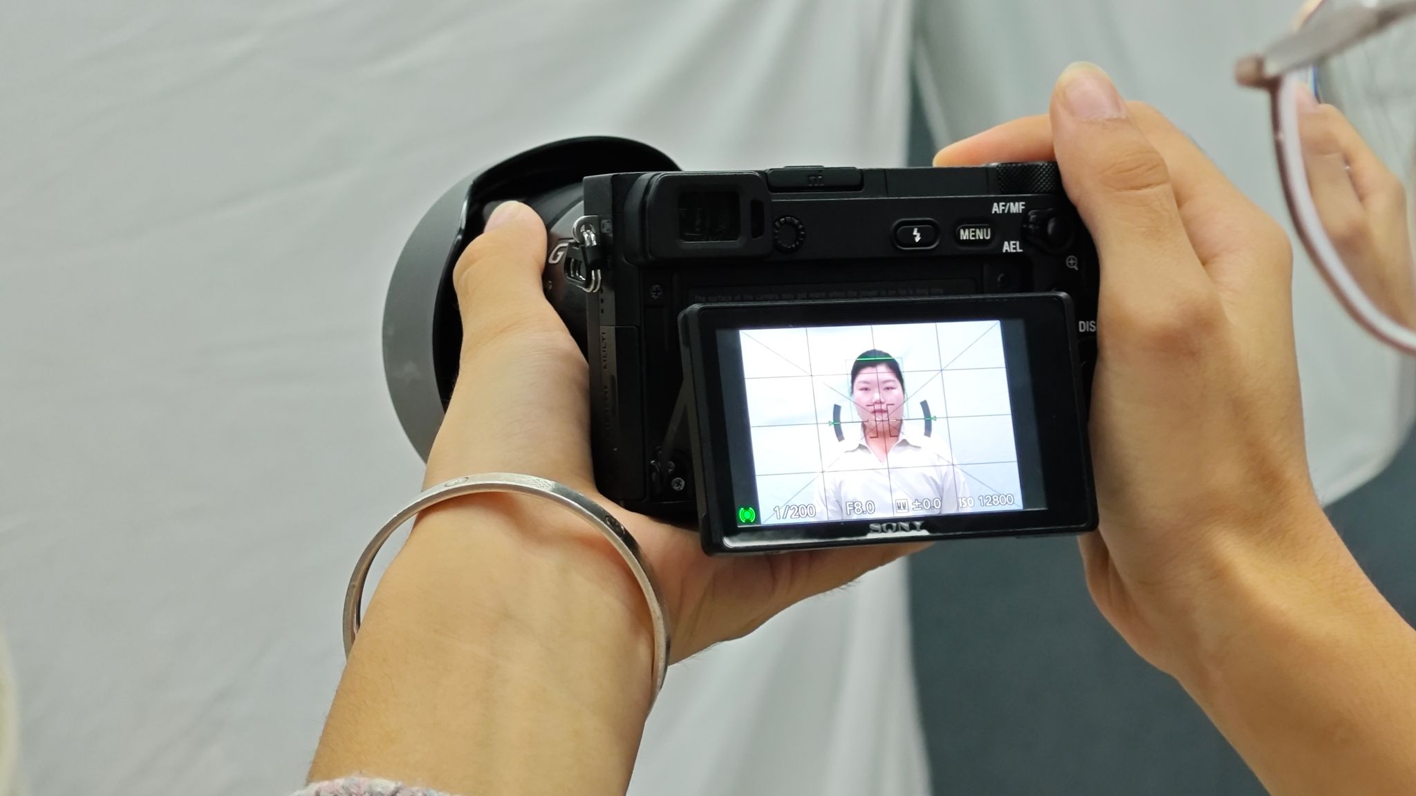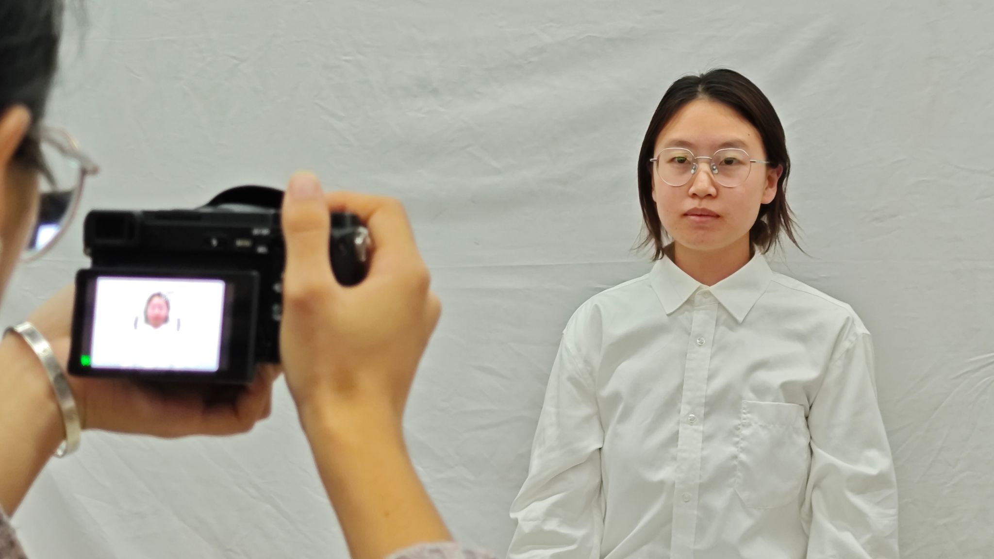 活动现场,工作室成员搭好拍摄背景布,准备各类道具,参与拍摄的同学准时到场并有序排队,从整理发型到调整着装,每一步都有条不紊。“下巴微收,肩膀放松,眼神看向镜头上方。”印象美学工作室的同学耐心为每一位同学调整姿态。王老师则在一旁记录拍摄进度,不时与学生交流:“证件照不仅是形象管理,更是对他人的一份尊重,希望这份‘仪式感’能帮大家更快融入大学生活。”短短一瞬间,同学们就完成了从素颜到“精修”的蜕变,定格下青春最利落得体的模样。