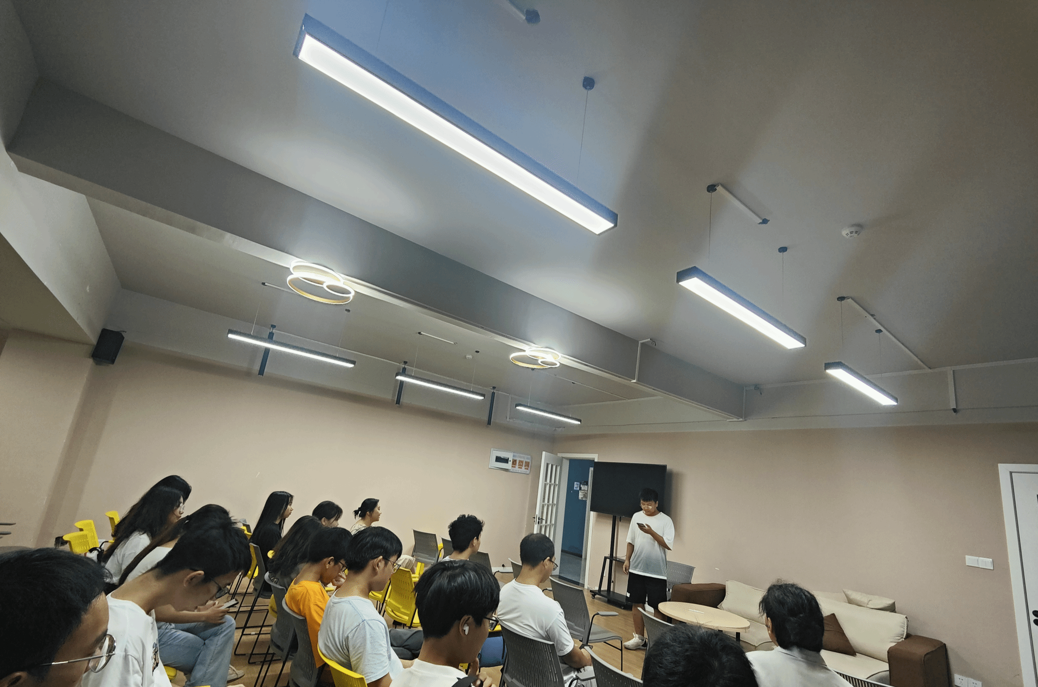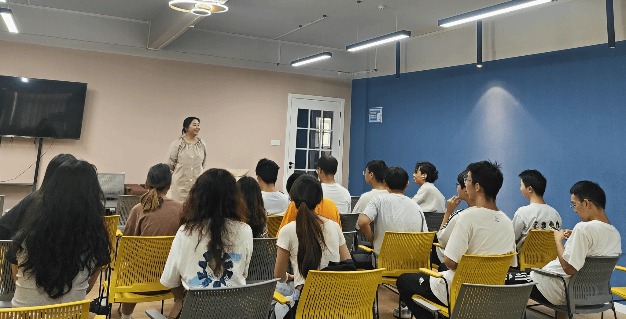 接下来是由同学们依次进行自我介绍,同学们最初的自我介绍只有两三句,就像羞涩的初夏之花,含蓄而内敛。然而,随着温和又有趣的何苗老师亲切而自然的引导,同学们开始大胆地展示自己,如同秋日的枫叶,从青涩的绿色逐渐变为热烈的红色。有的同学的自我介绍甚至引得全场大笑,似夏日的暴风雨,短暂而热烈,让整个氛围变得活跃而轻松。何苗老师通过与同学们的交流与互动,也基本了解了各位的兴趣爱好,为后续开展活动奠定基础。