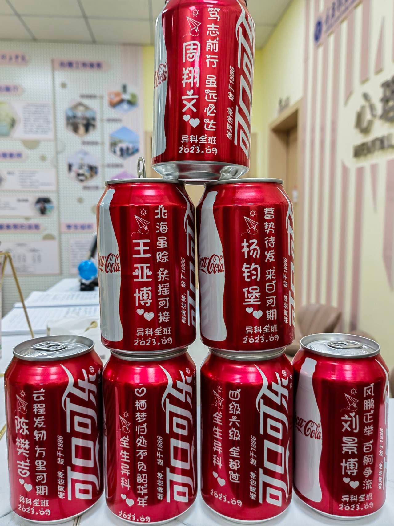 林红老师精心准备了一系列的欢迎仪式和互动环节。活动开始林红老师将提前印好每位成员名字与个性化的祝福语的可乐和铅笔送到了同学们手中,同学们拿着这些可乐,脸上洋溢着幸福的笑容,仿佛他们手中拿的不再是冰冷的铝管而是老师精心送来的温暖的祝福。可乐代表娱乐与放松,铅笔代表学习与工作,林老师希望新的学年所有成员能学习成长,生活愉快。
