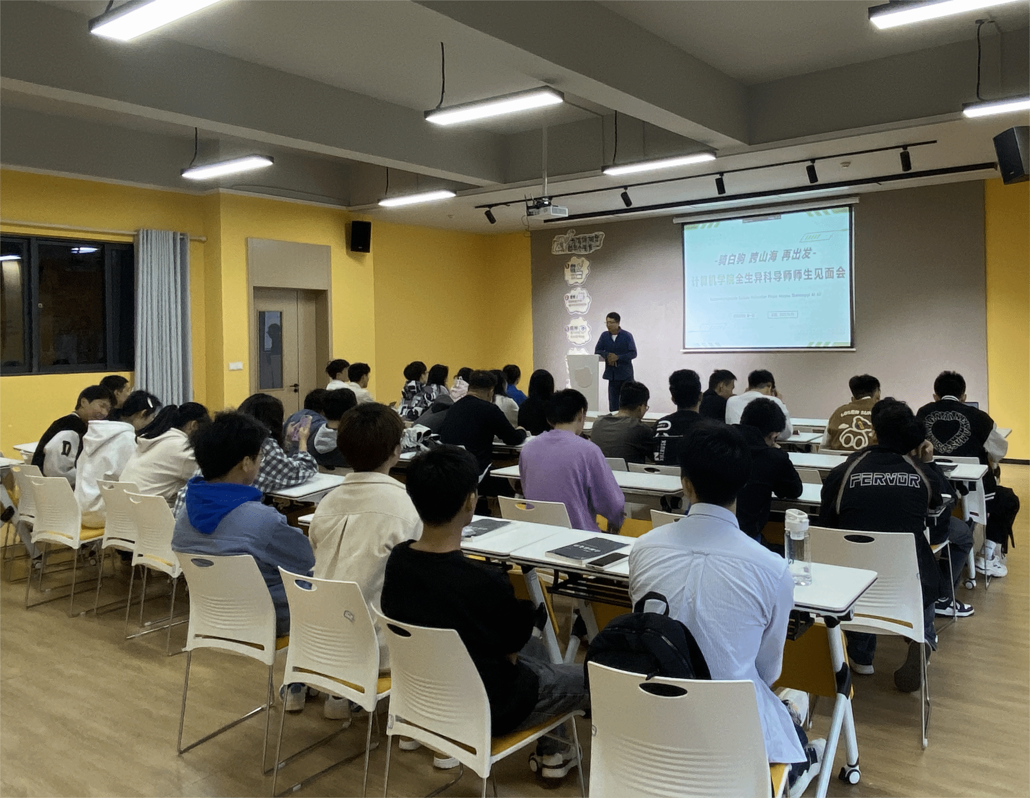 为切实做好我校全生异科导师工作,全面贯彻全生异科导师制实施方案,深入推进“以学生发展为中心”教育理念广泛传播,2023 年10月19日,计算机学院异科导师谢一阳在瀛溪书院语者演讲培训室召开了2023级计算机科学与技术专升本14班、15班首次师生见面会。