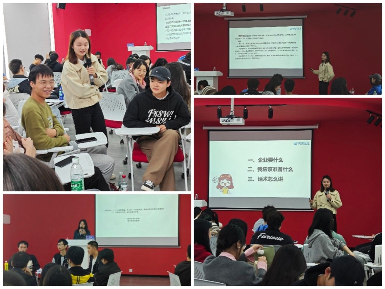 西风落叶,丹枫迎秋。应广大同学的邀请,本校计算机学院举行了一场求职讲座,意在让学生清晰未来的职业选择以及如何书写一份好的简历。活动于2023年10月19日至10月20日于玉棠书院Talk King演讲室举行,由兰宇、童学容、李佳、阙小梅四位老师共同为同学们讲解。