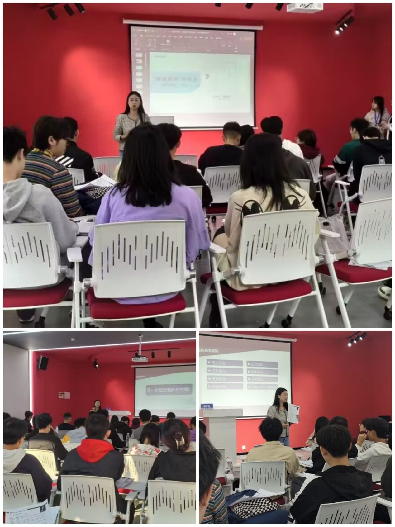 在为学生们讲解了一些简单的求职后,童学容老师让学生们以小组的形式来检视一些简历且指认其中的优劣之处,而后为同学们讲述了HR对于简历的见解,并详细介绍了一份好的简历是如何从人群中脱颖而出